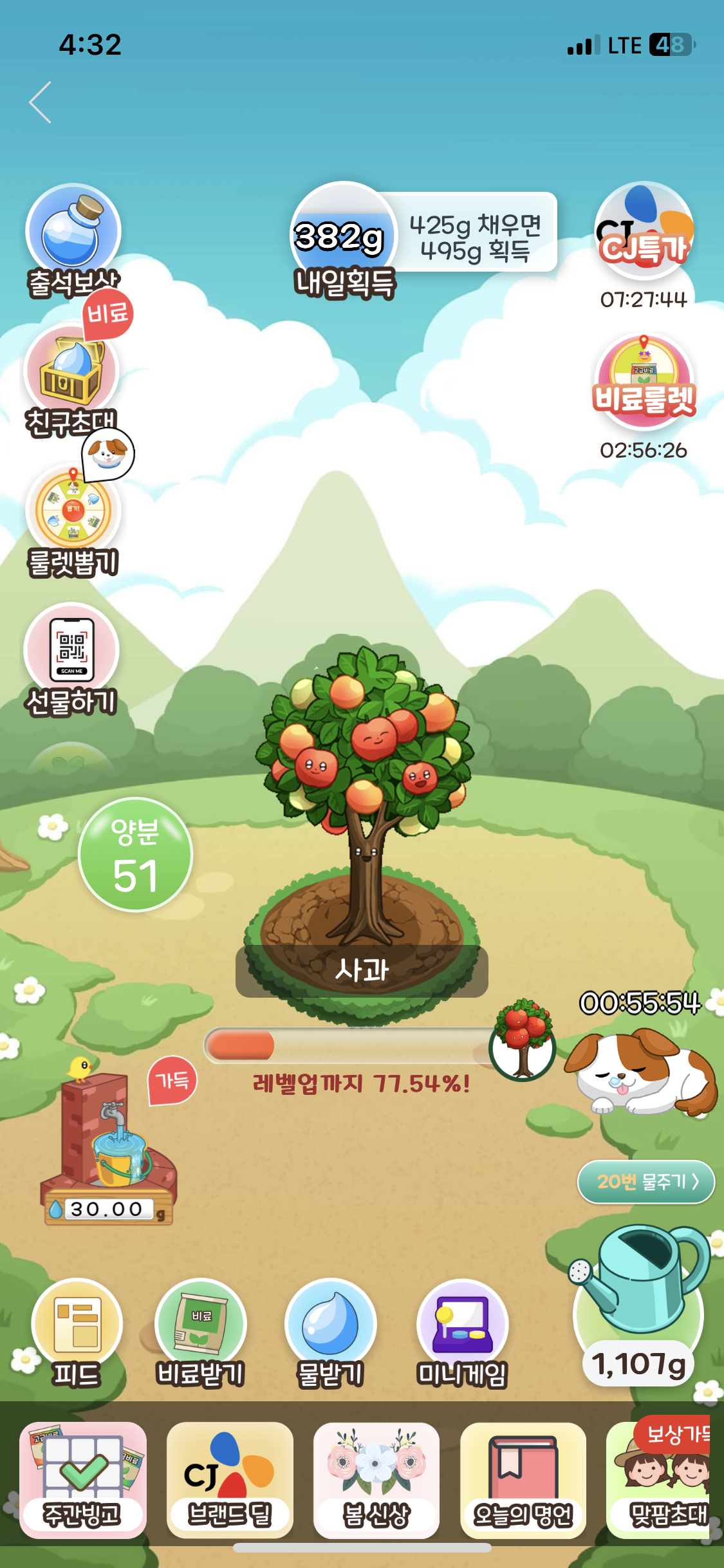 실제로 받을 수 있는게 맞냐고 물었었는데, 그렇다길래 나도 깔아서 열심히 하고있다. 친구는 이미 사과 다 키우고 감자키우는중이다 ㅋㅋㅋ