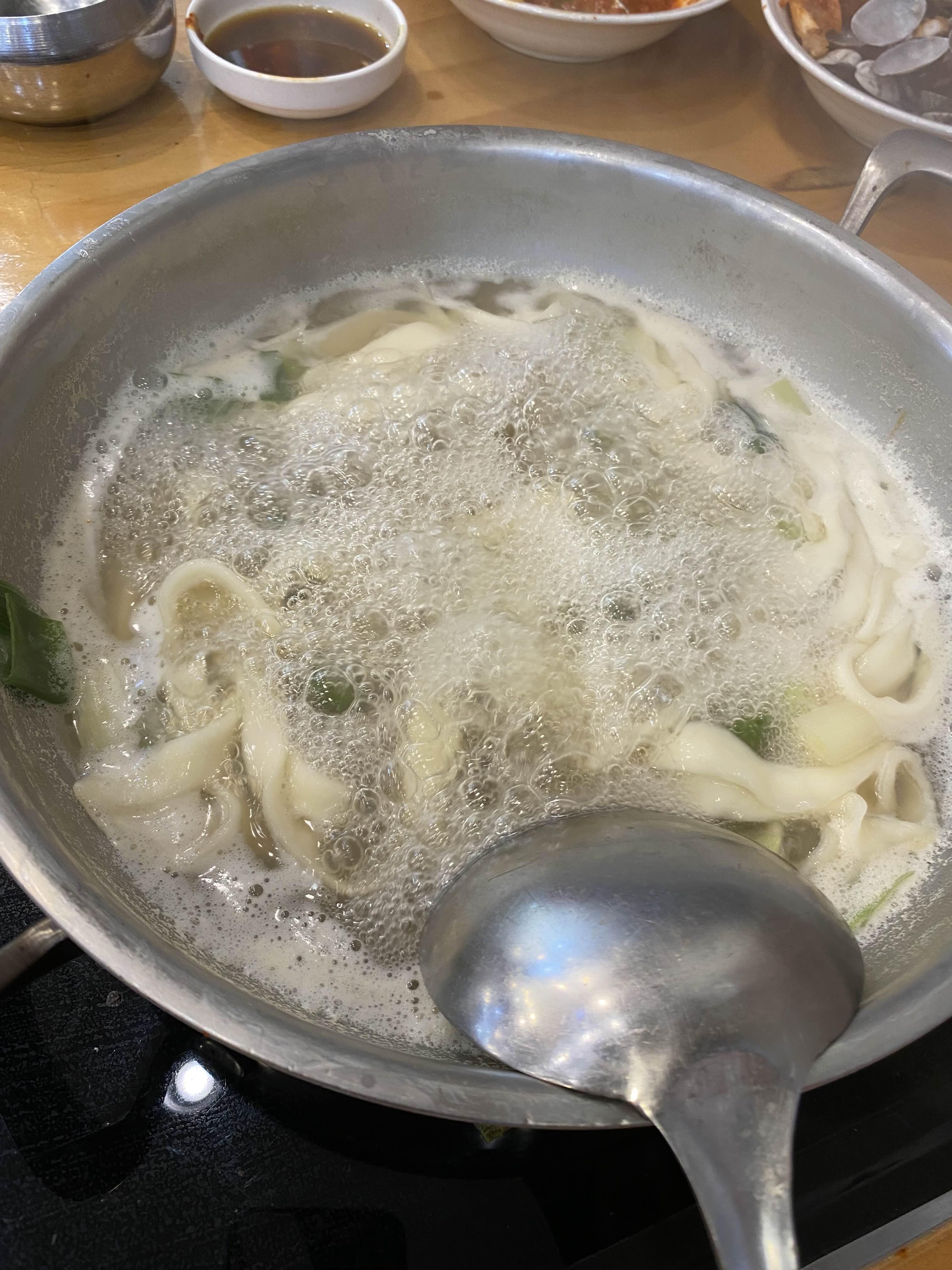 칼국수 사리를 시켰는데, 알고보니 칼국수 사리는 해물탕에만 시키는 거였다. 주문할때 미리 확인해주셨으면 좋았을텐데^^;;; 해물찜에 사리를 시키면 어떡하냐고... 뭐 우동사리처럼 비벼먹을 수 있을줄 알았죠..ㅎㅅㅎ