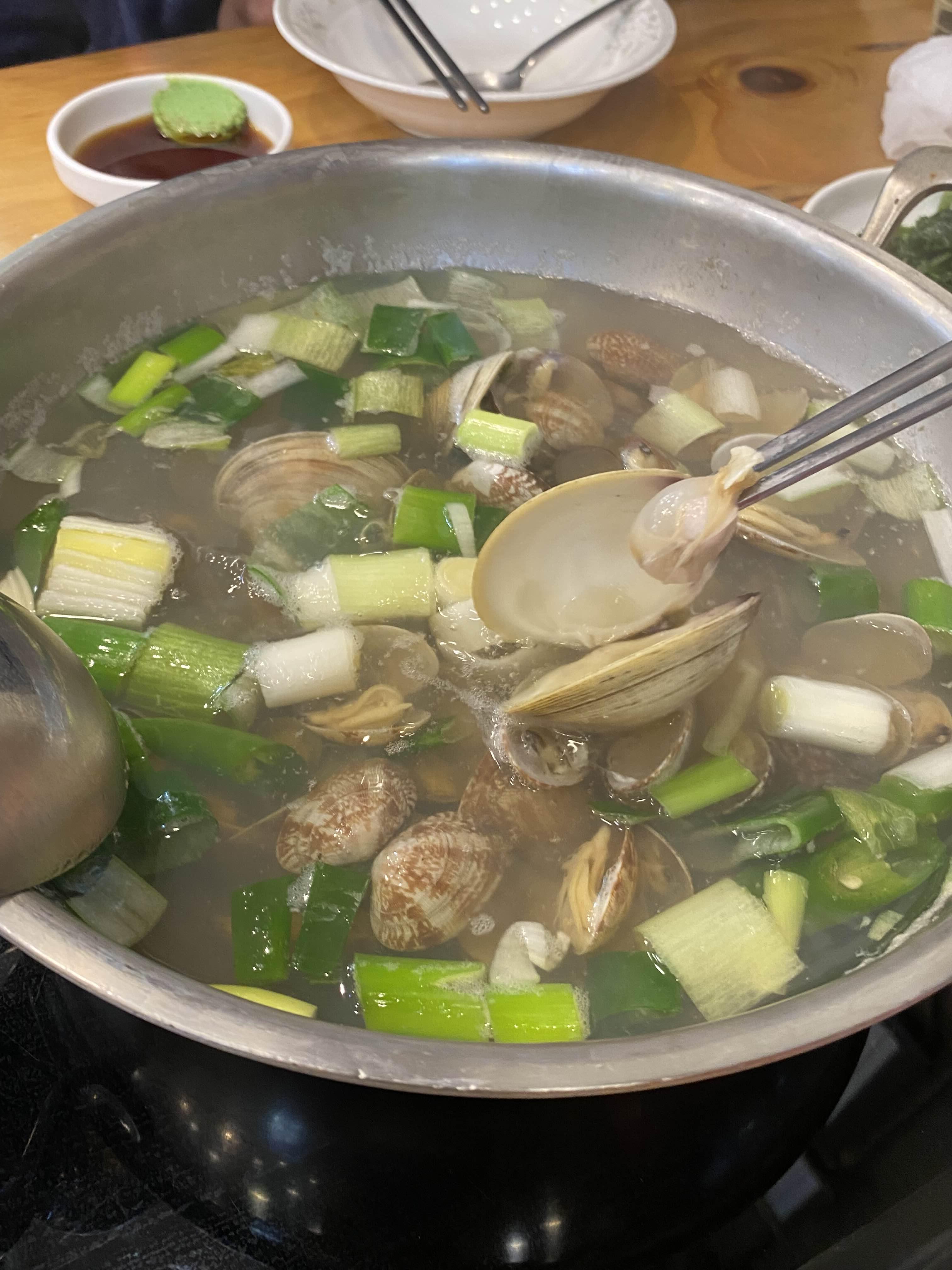 해물찜이 나오기 전에 이렇게 바지락.... 국..? 나오는데 진짜 너무 시원하고 맛있었다. 바지락도 가득했다.