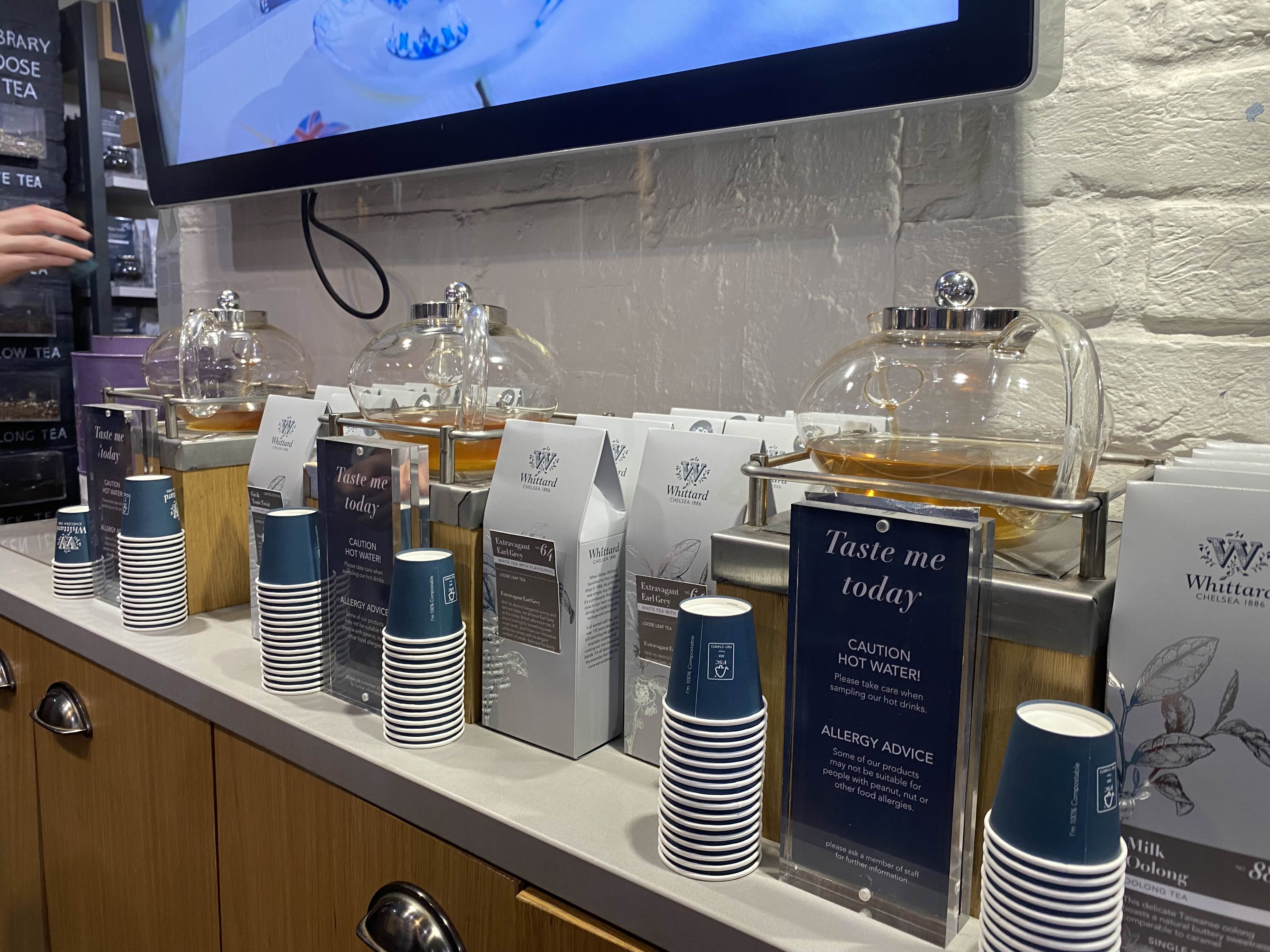 안에 들어가니 차와 핫초코를 시음할 수 있게 해두었다. 핫초코는 너무 짜서 깜짝놀랐다. 나는 핫초코 미떼가 더 좋아