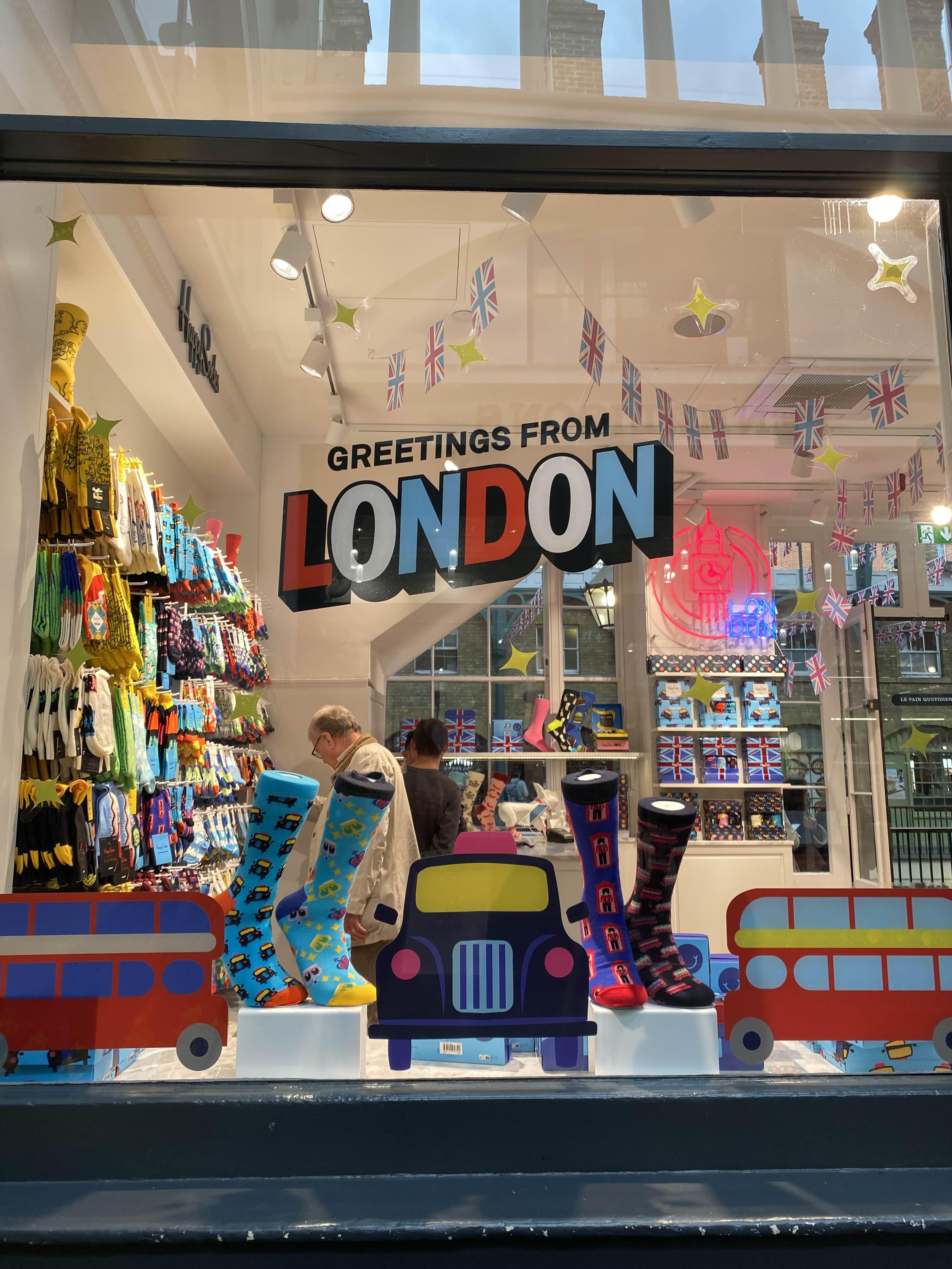 사실 예전에 알래스카 출장 때 친구들에게 양말을 선물했었고, 그 이후에 그 선물을 받은 친구 중 한명이 미국 여행 다녀오면서 양말을 사다줬어서, 이번에 나는 런던이 그려진 양말을 사가고 싶었는데, 진짜 인간적으로 너무 비싸서 못샀다. 빨간 버스 그려진 양말 한켤레가 14.99파운드, 그러니까 한화로 약 25,000원....???!?!?!! 다시 봐도 놀라운 가격..! 질도 별로 안좋을텐데...ㅠㅠ 해피삭스 말고 그냥 가판대에서도 양말을 팔긴 했는데, 별로 안예뻤다. ㅠㅠ 너~무 여어어어어엉구우우우욱 같은 느낌이랄까. 그래서 이번에는 양말은 패스..!