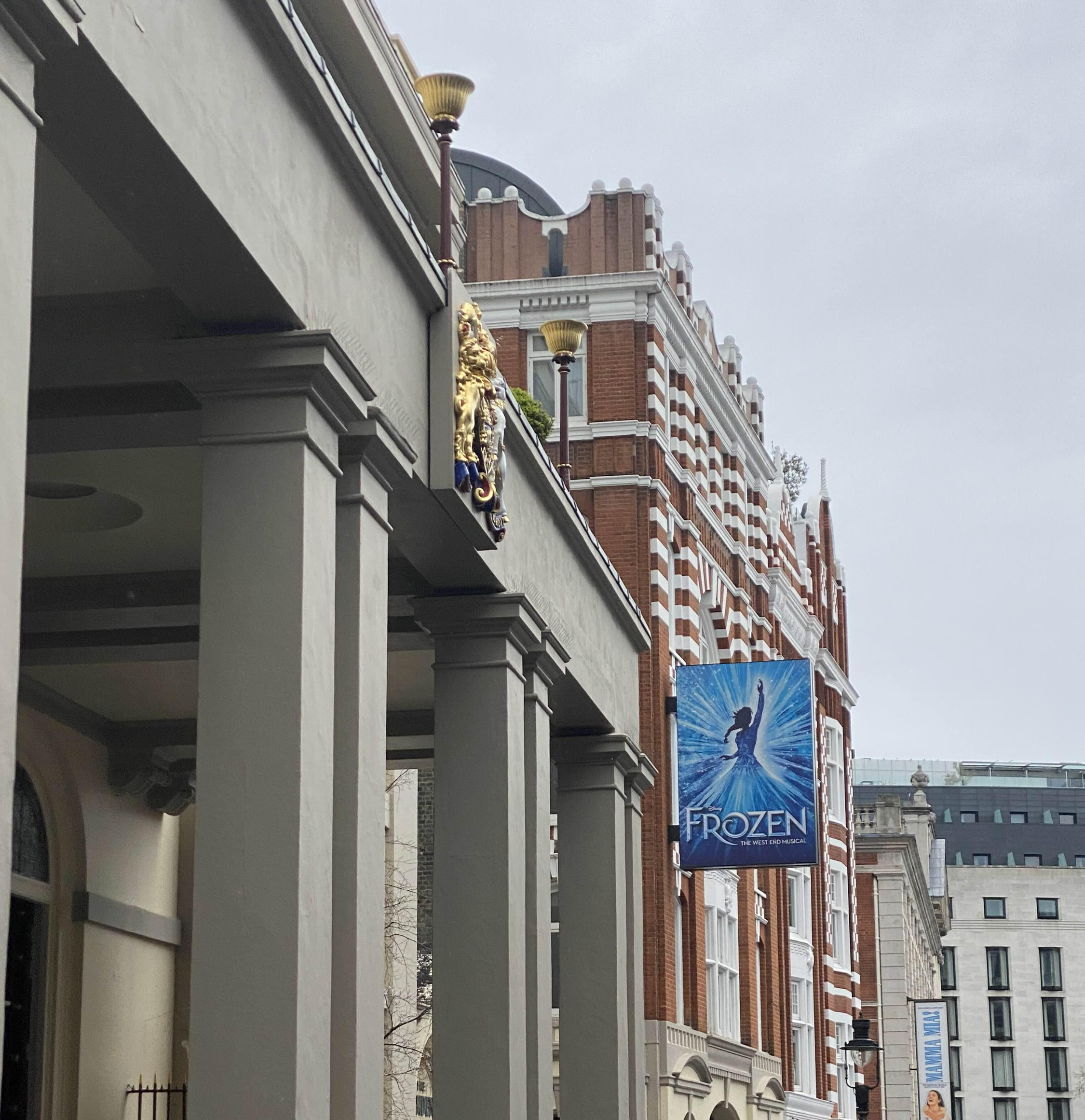 뮤지컬은 Theatre Royal Drury Lane에서 열린다. 히드로공항에서 튜브를 타러가는 길에 종종 프로즌 광고판을 봤었는데, 직접 뮤지컬을 보고 포스터를 다시 보니 배우가 더 예뻐보였다.