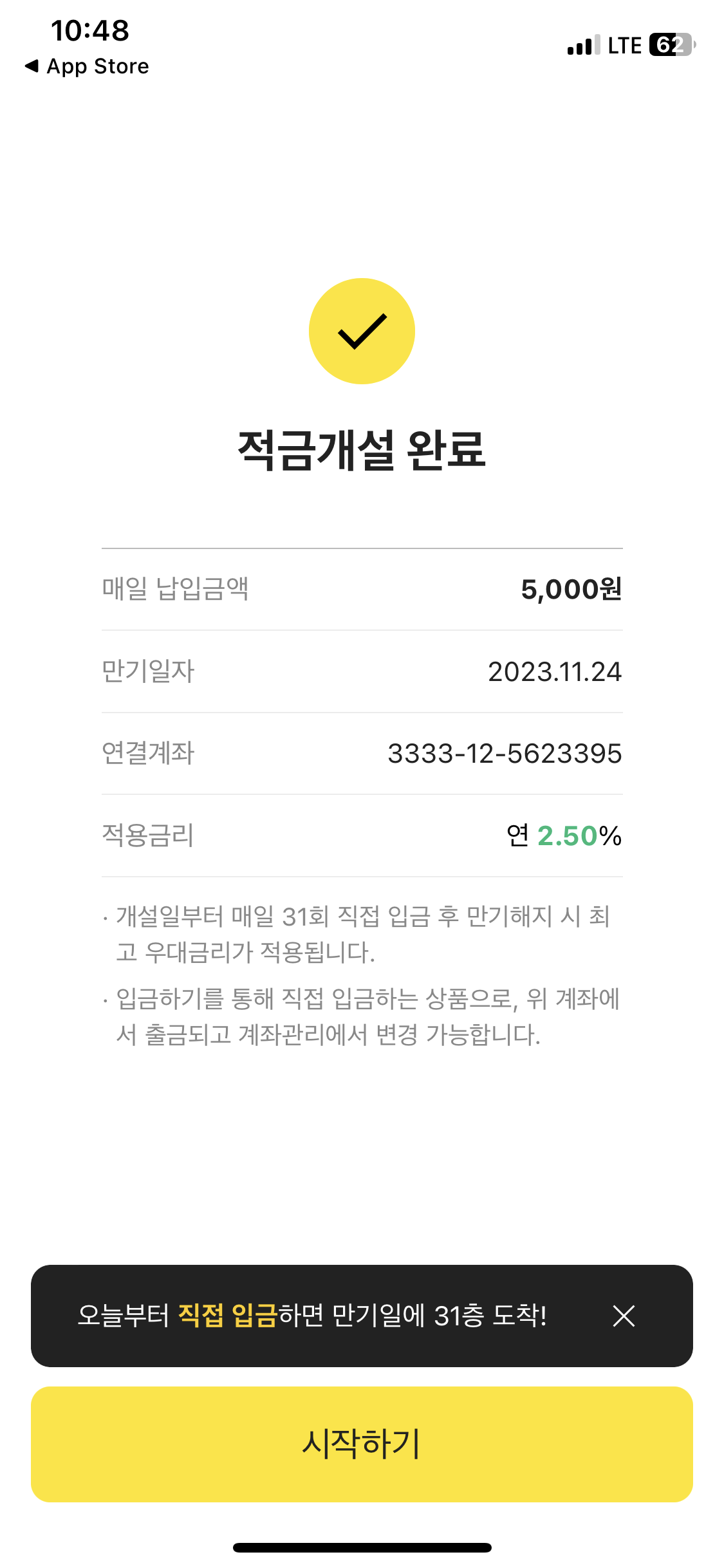 - 적금방식: 31일간 매일, 하루 한번 직접 입금
