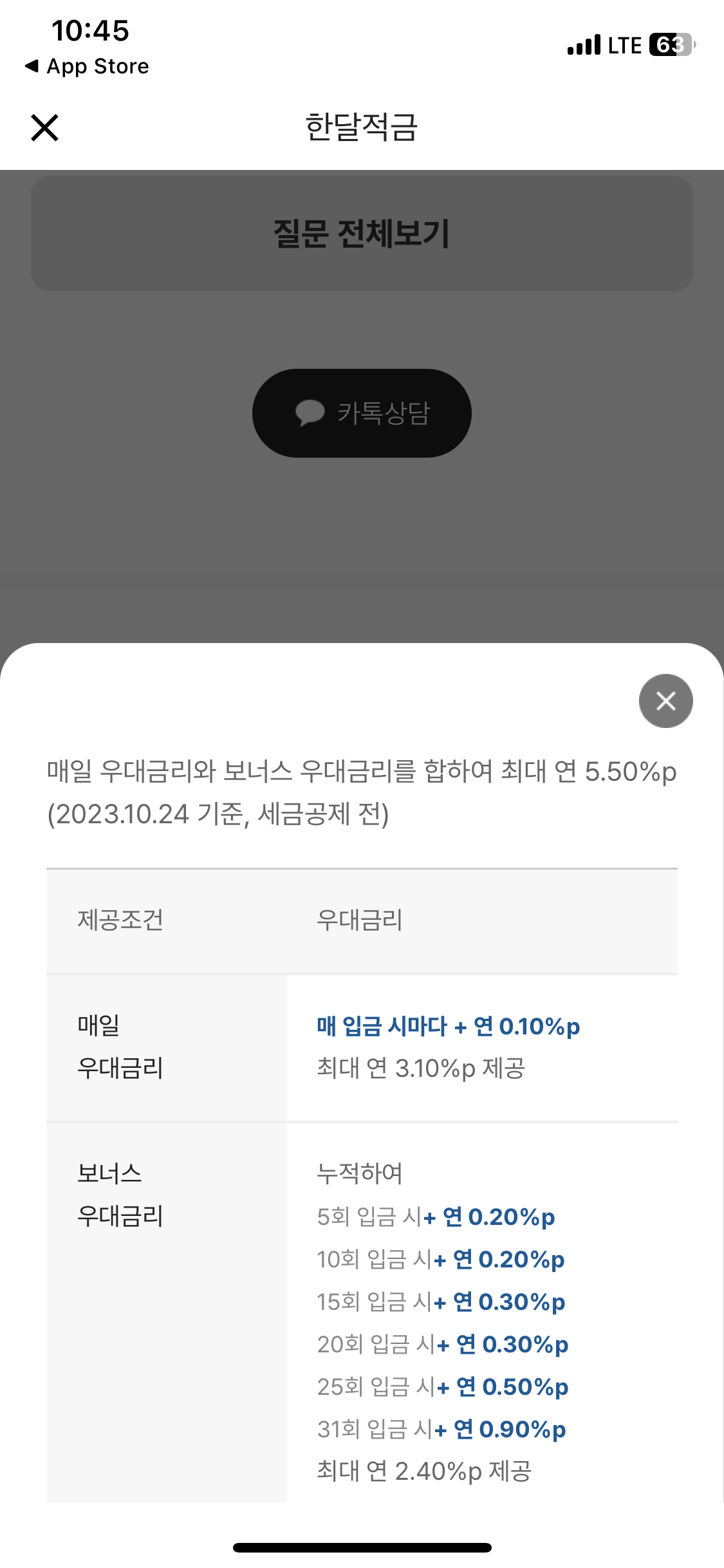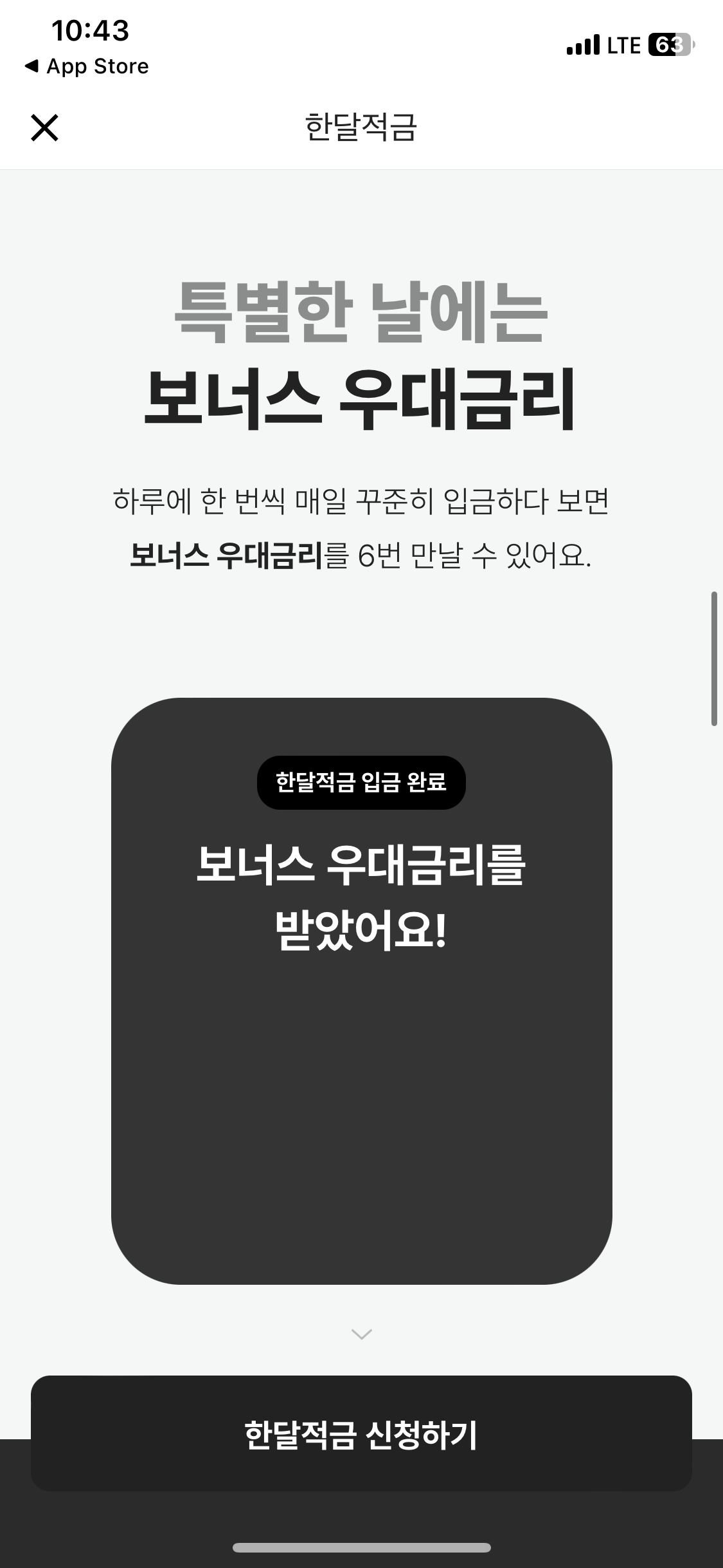 기본 연 2.5%에 최고금리가 연 8%다. 물론 한달짜리 적금이라 모든 적금이 그렇듯 8%가 진짜 8%는 아니지만, 그래도 짧은 시간동안이라도 이율을 높게 받을 수 있으면 좋지 않나 싶다. 적금 시작해두면 돈도 모이고!
