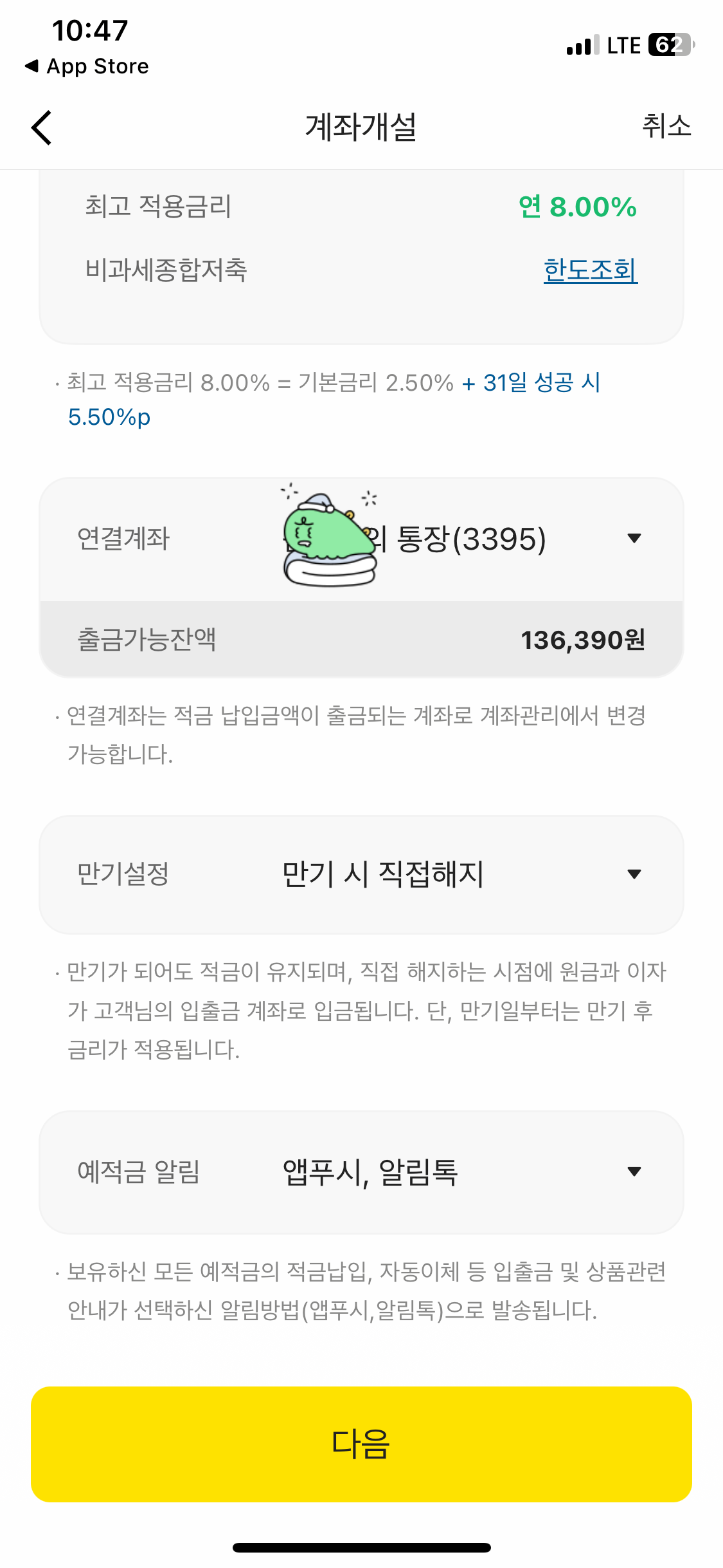 이번달 다음달 빡셀거같긴하지만, 돈 덜쓰는게 목적이니 하루에 오천원 아낀다 생각하고 적금 가입!