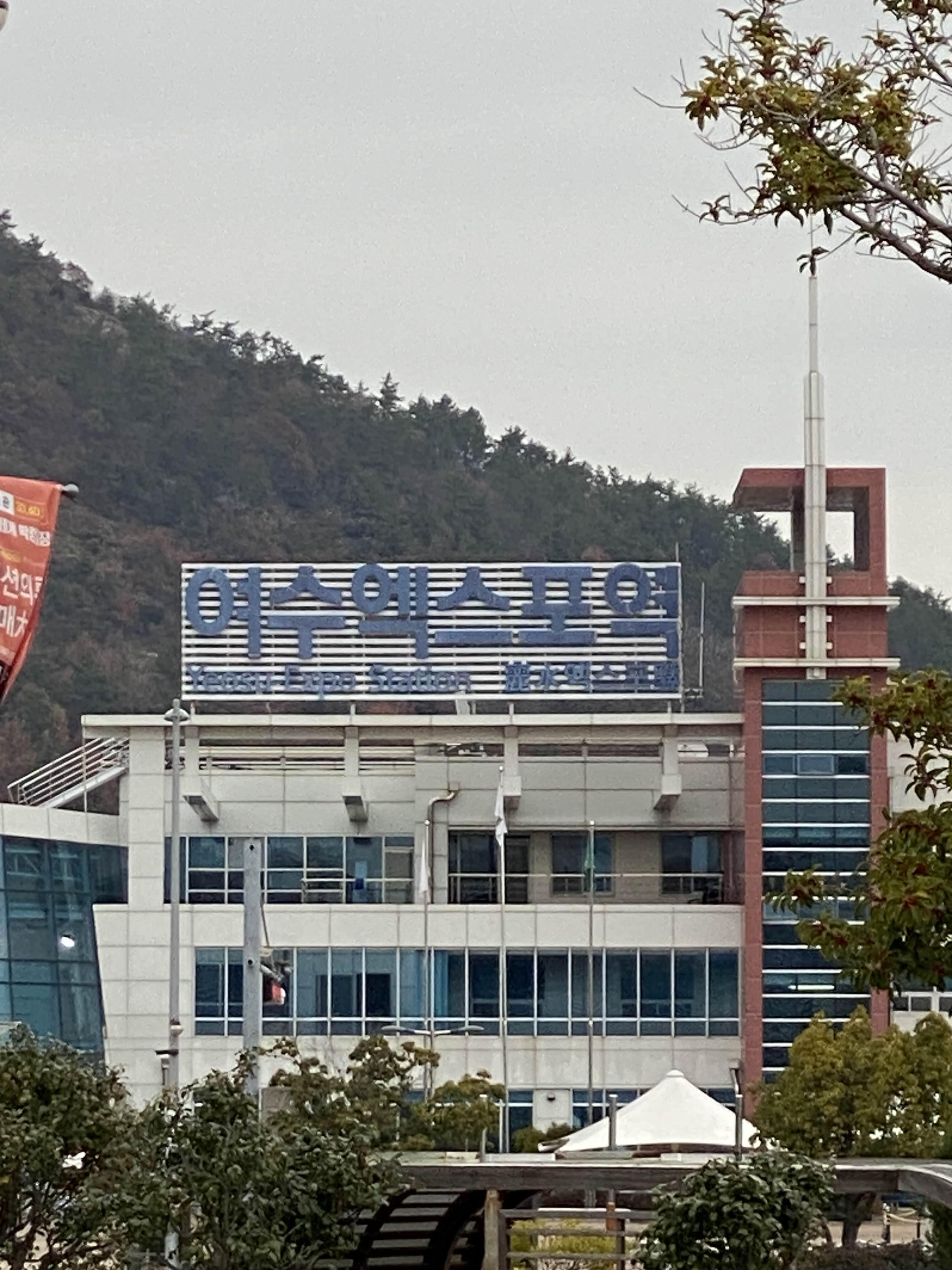 다락휴에서 머무는 동안 아침에 나올 때 찍어본 여수엑스포역!