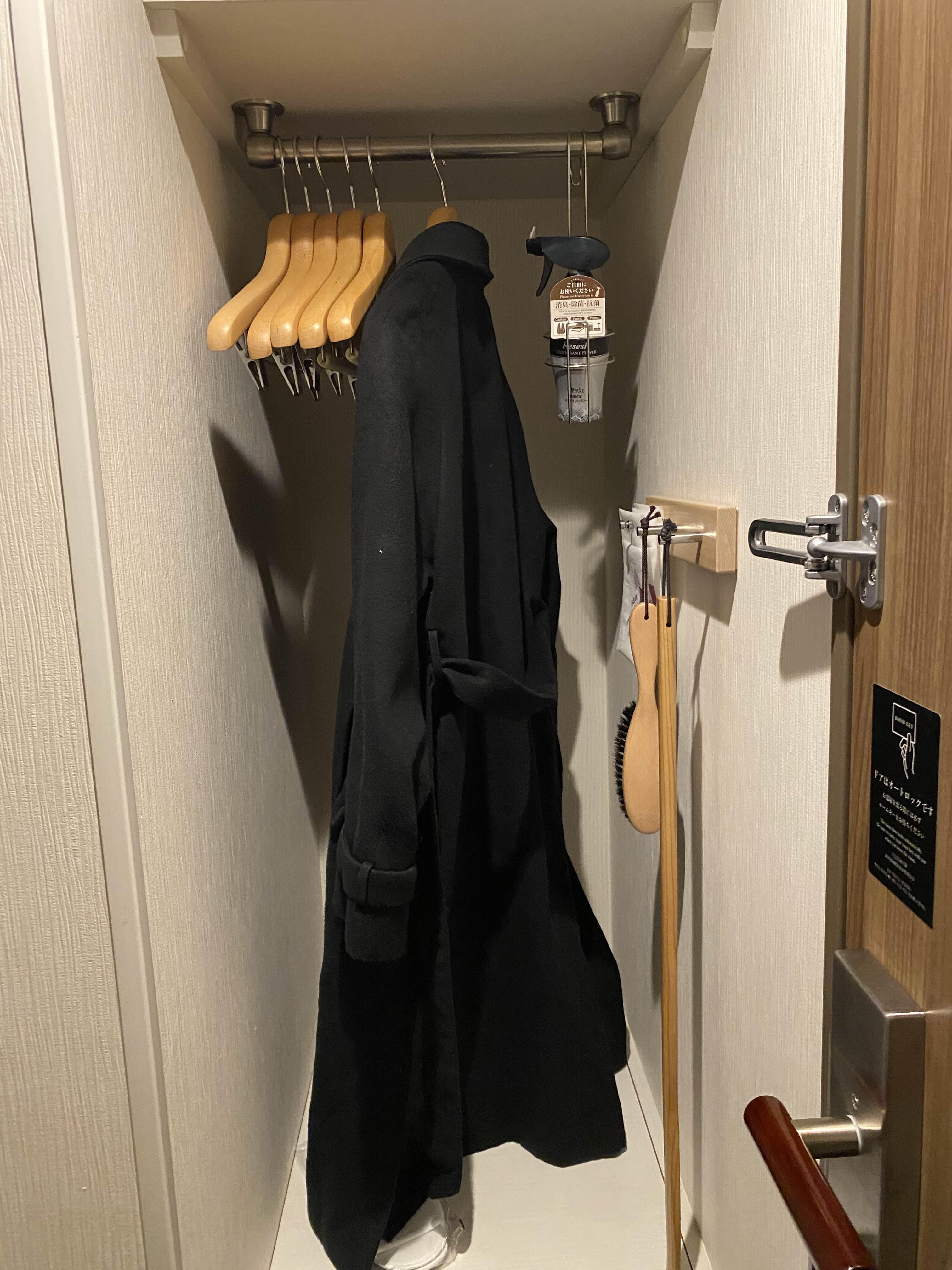 방에 들어가면 오른쪽에 옷걸이가 있고,