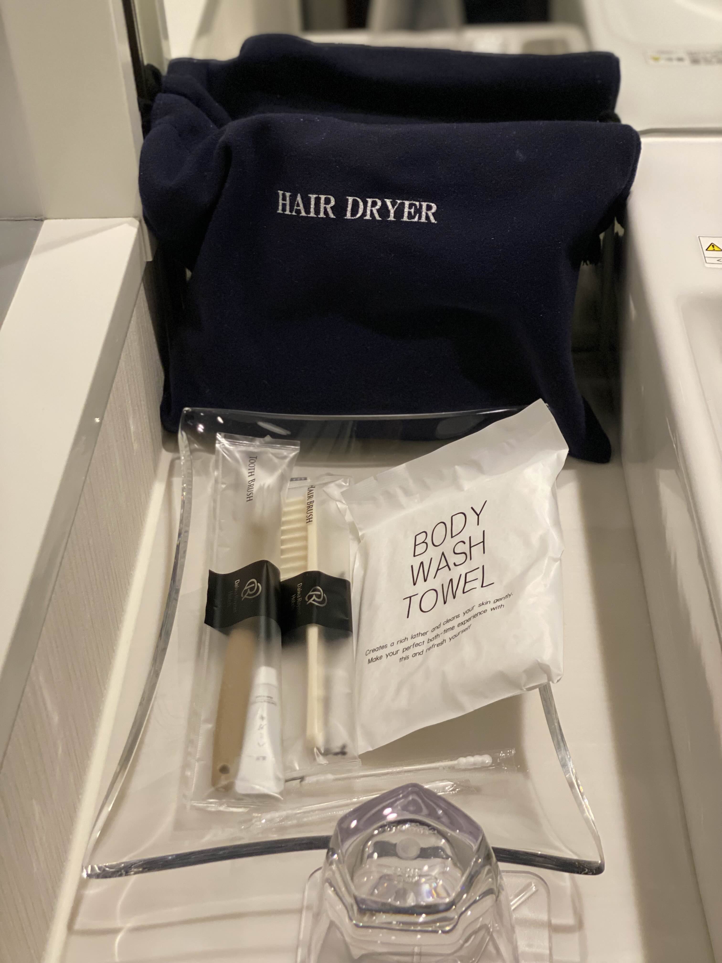 드라이기, 빗, 칫솔, 바디타올, 면봉까지 모두 구비되어있다.