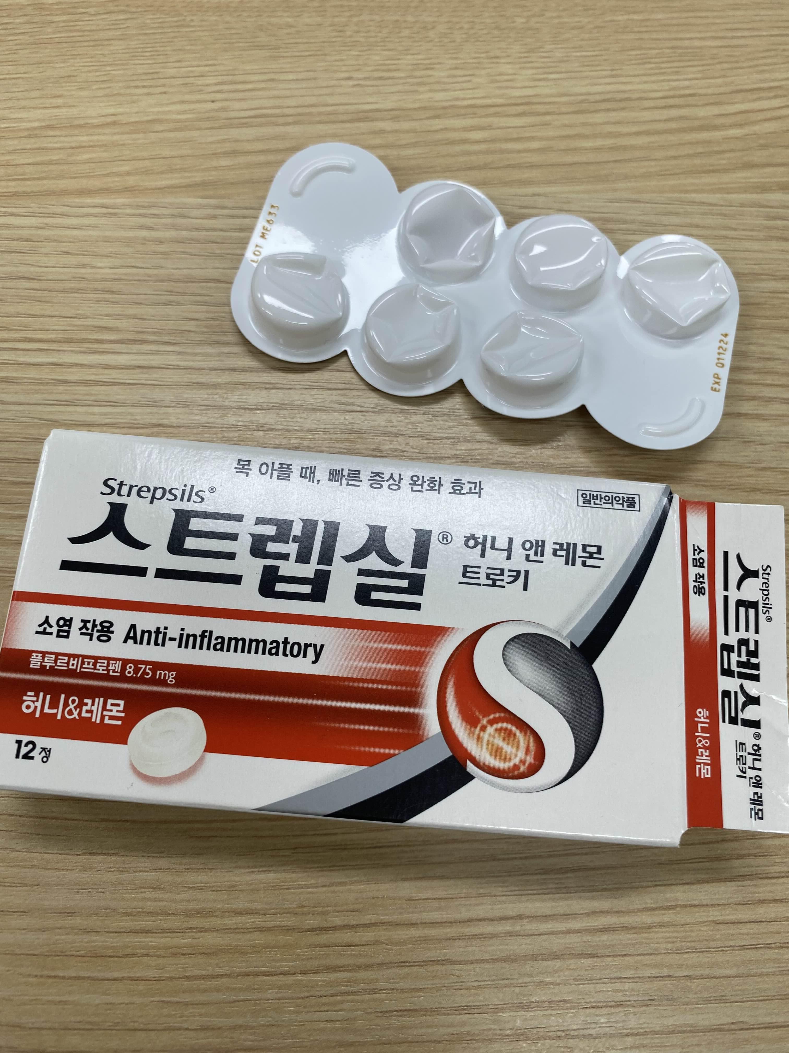 스트렙실 또한 어린이는 복용 금지! 단기적이긴 하지만 목 아플 때 입에 하나 넣고 있으면 좀 낫다.