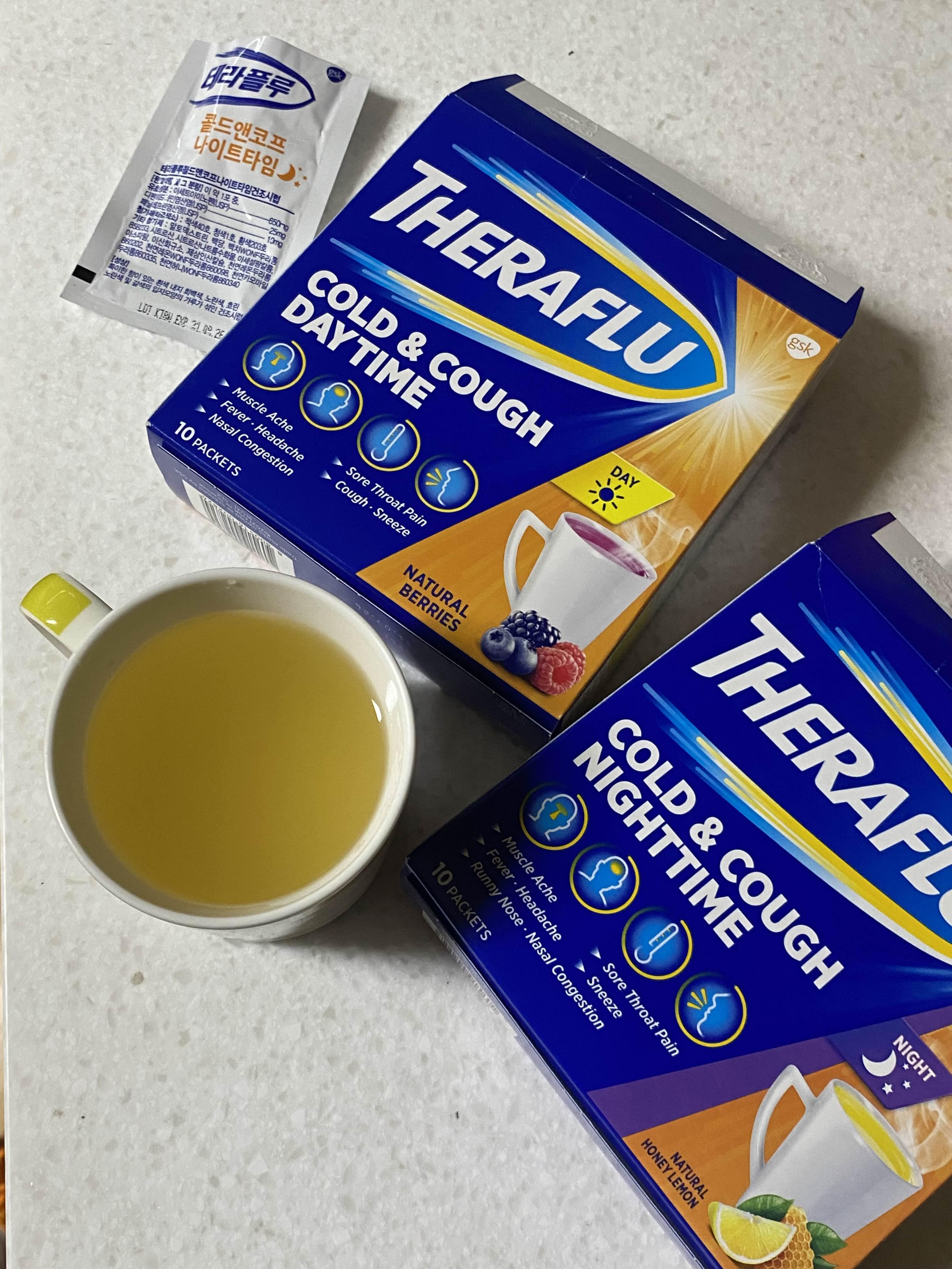 집에 갔더니 엄마가 또 테라플루를 챙겨주셨다. 알고보니 몇 주 전 엄마아빠가 감기로 고생하셨을 때도 테라플루로 버티셨다고 한다. 집에는 테라플루 데이타임도 있었는데, 개인적으로 데이타임이 더 맛있... 데이타임은 베리맛이다!