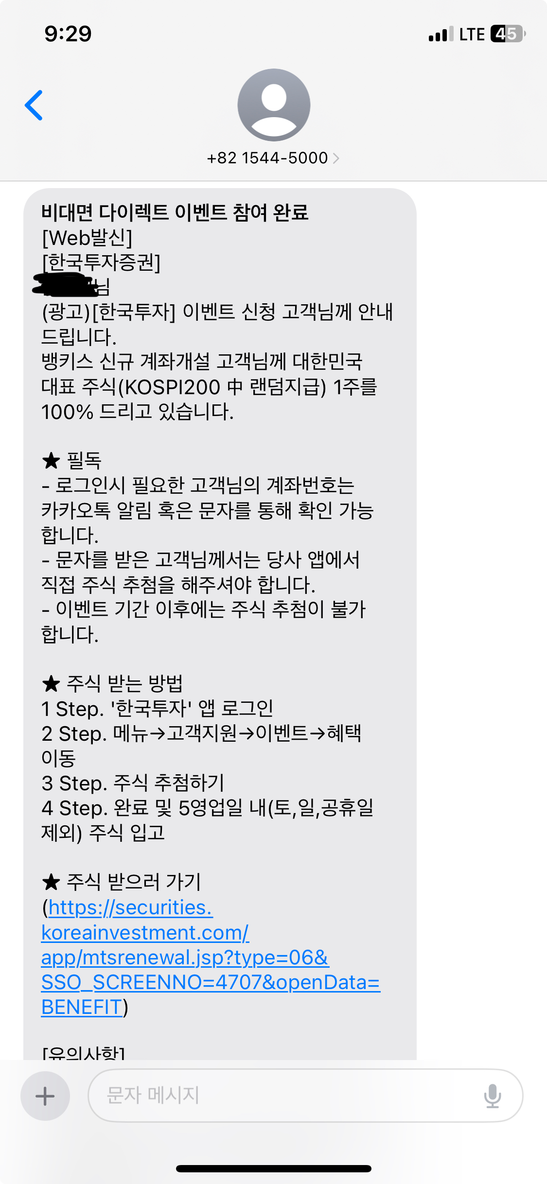 "한국투자 계좌개설 이벤트 주식1주 입고되었습니다. 감사합니다."