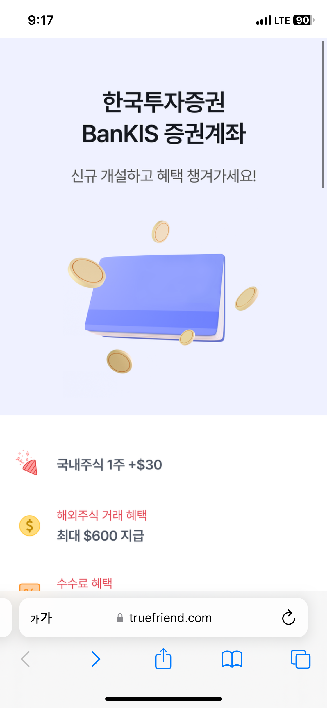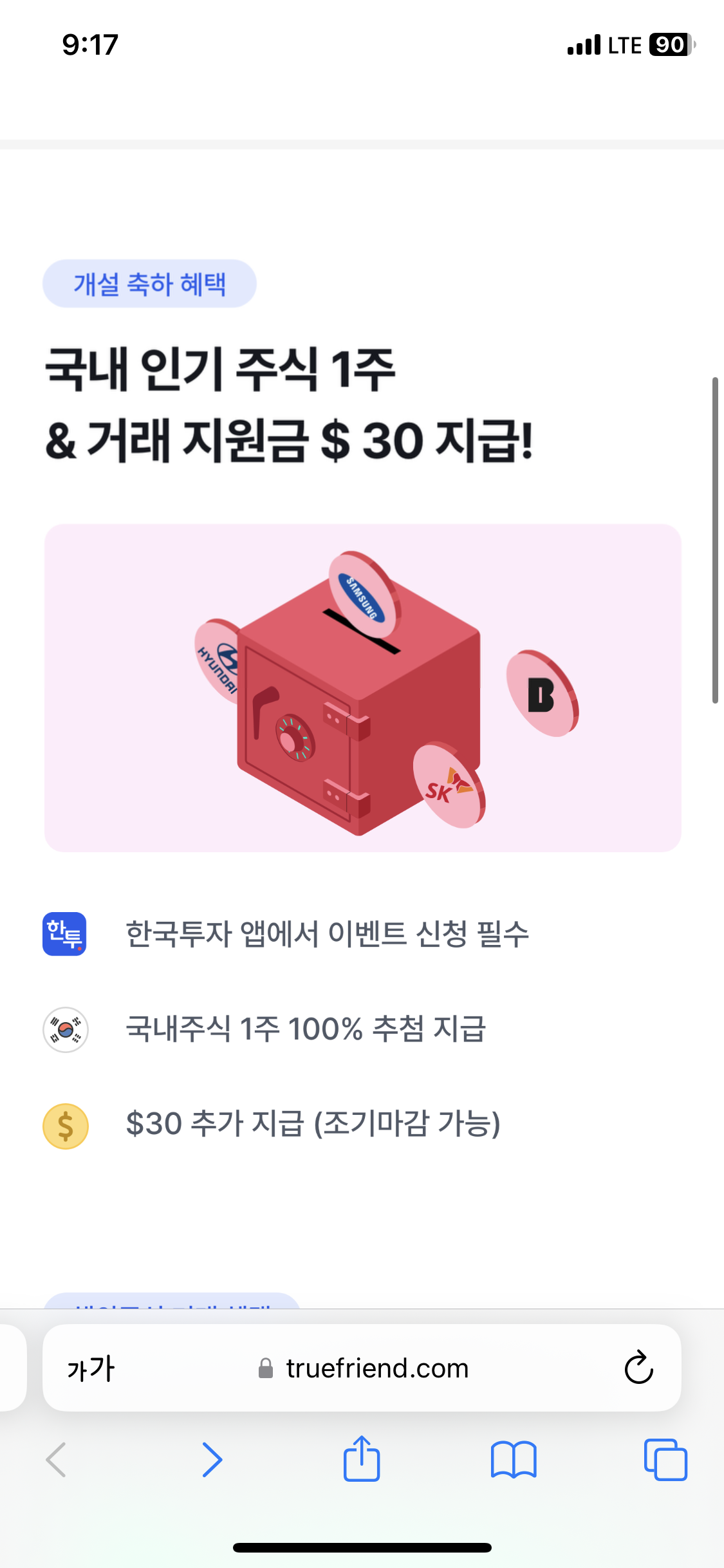 한국투자증권 계좌를 개설하면 국내 주식 1주랑 30달러를 준다고 해서 득달같이 가입해봄. 그리고 정말 주는지 궁금했다. 해외주식 거래 혜택도 있다! 어차피 만들 증권계좌, 이렇게 준다고 할때 만들어야지!
