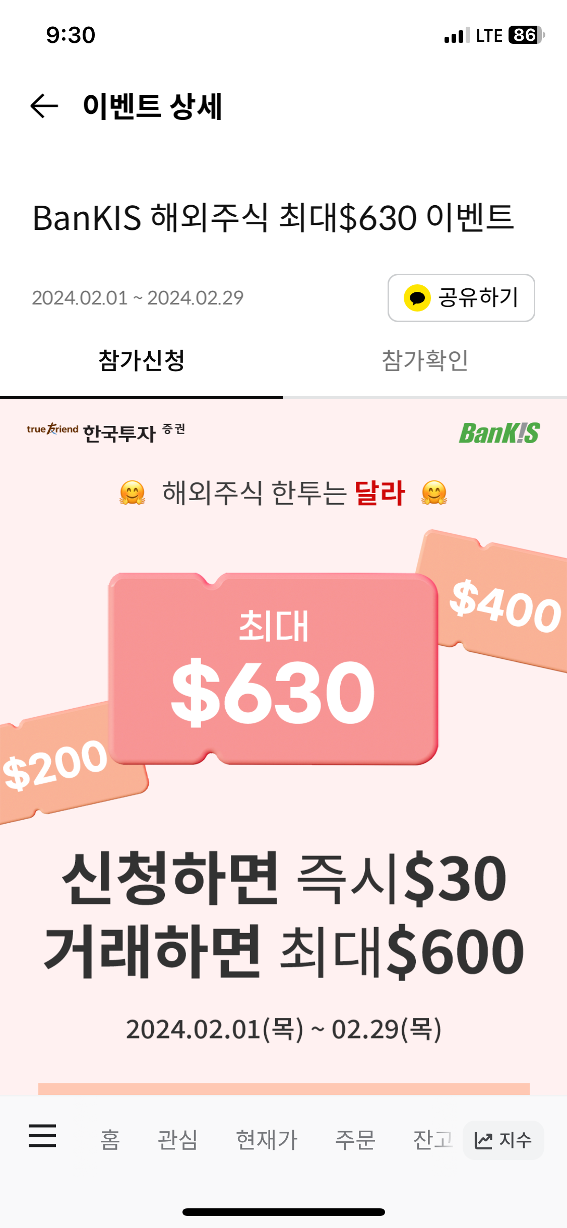 이게 같은 이벤트인데 아래는 한국투자증권 어플에서의 안내 화면이다.