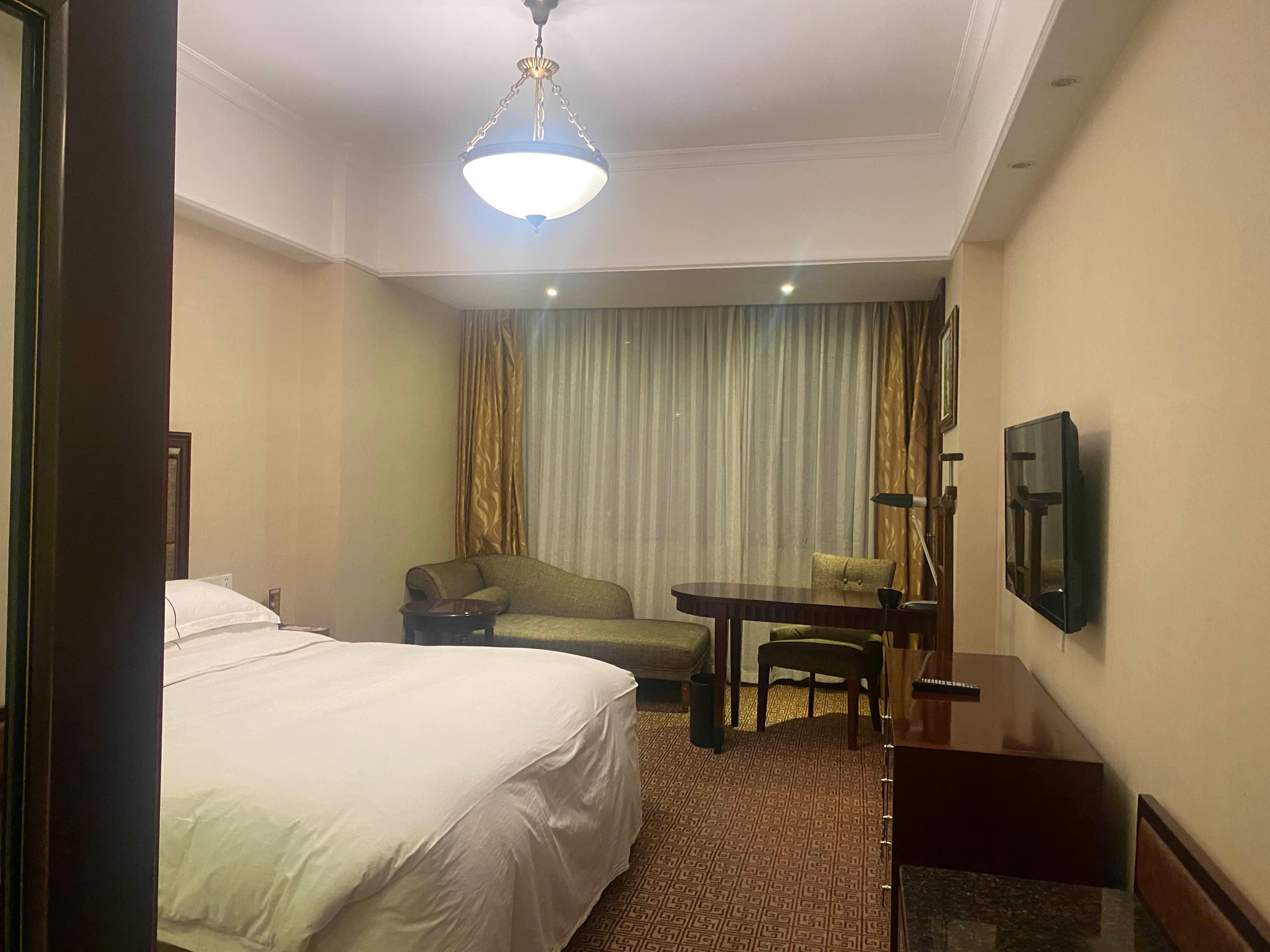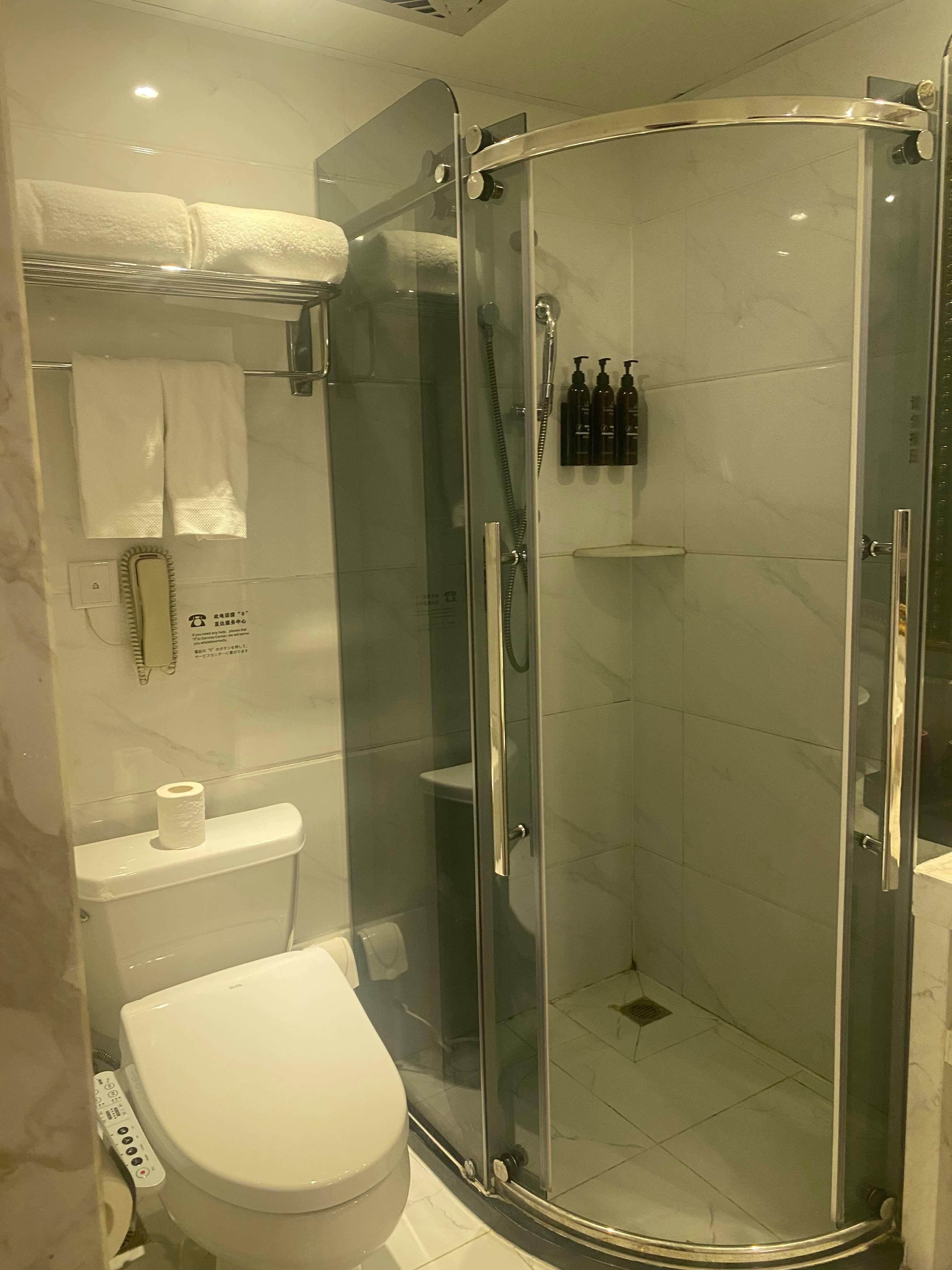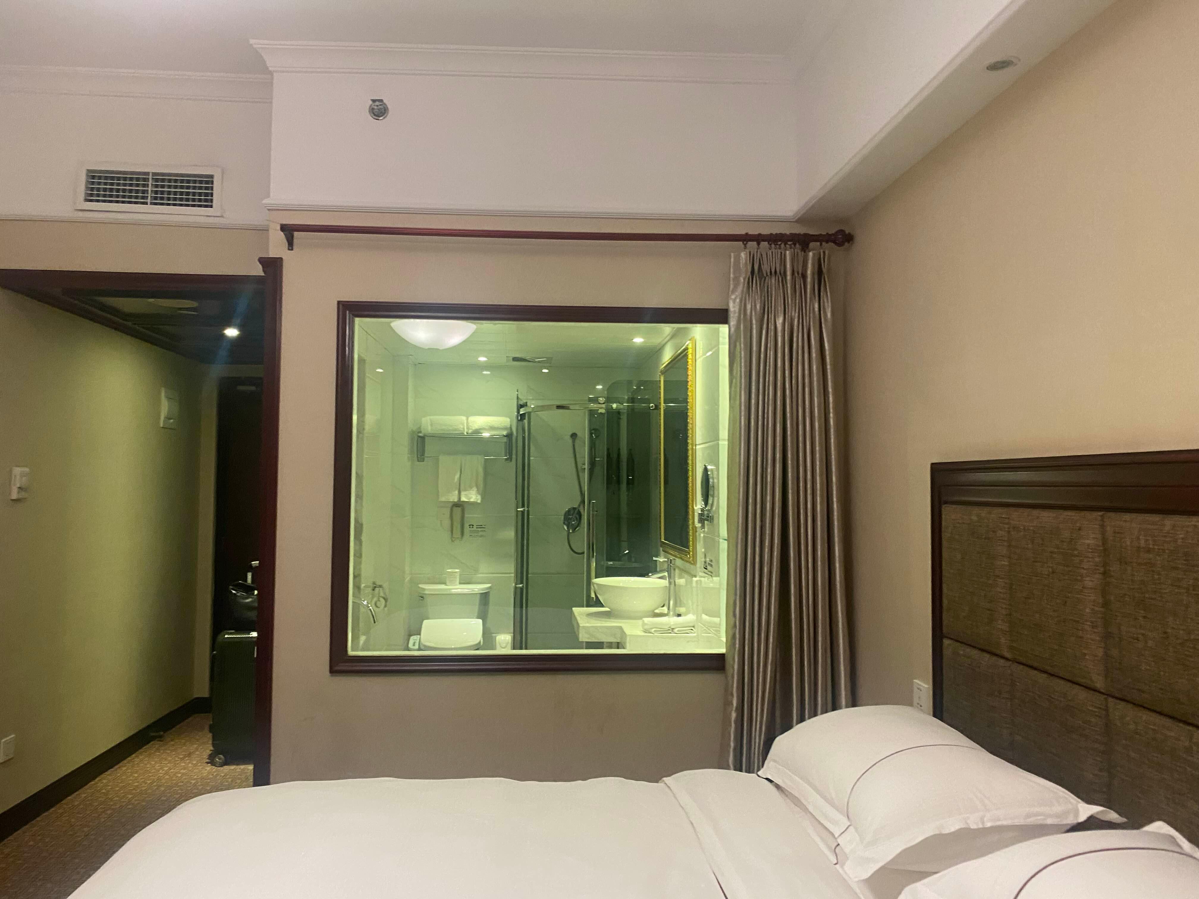 방은 매우 넓고 쾌적했다. 베이징 호텔과는 달리 담배냄새가 전혀 안났고 깨끗했다. 특이한건 침실에서 욕실이 다 보인다는 거다. 물론 커튼을 칠 수 있긴 한데, 왜 이렇게 만들었을까 궁금했다. 욕실은 욕조 따로 샤워실 따로 있었다.
