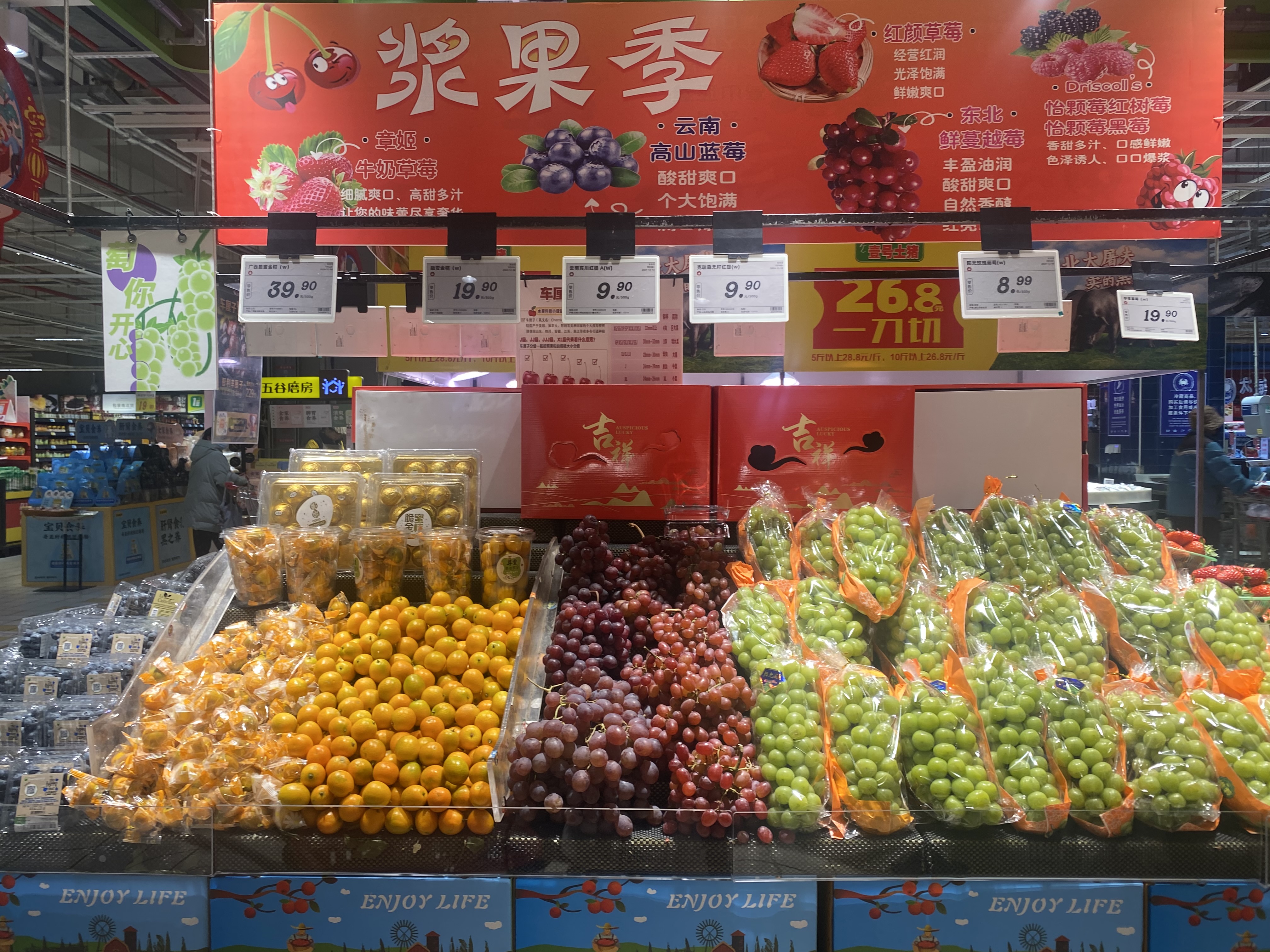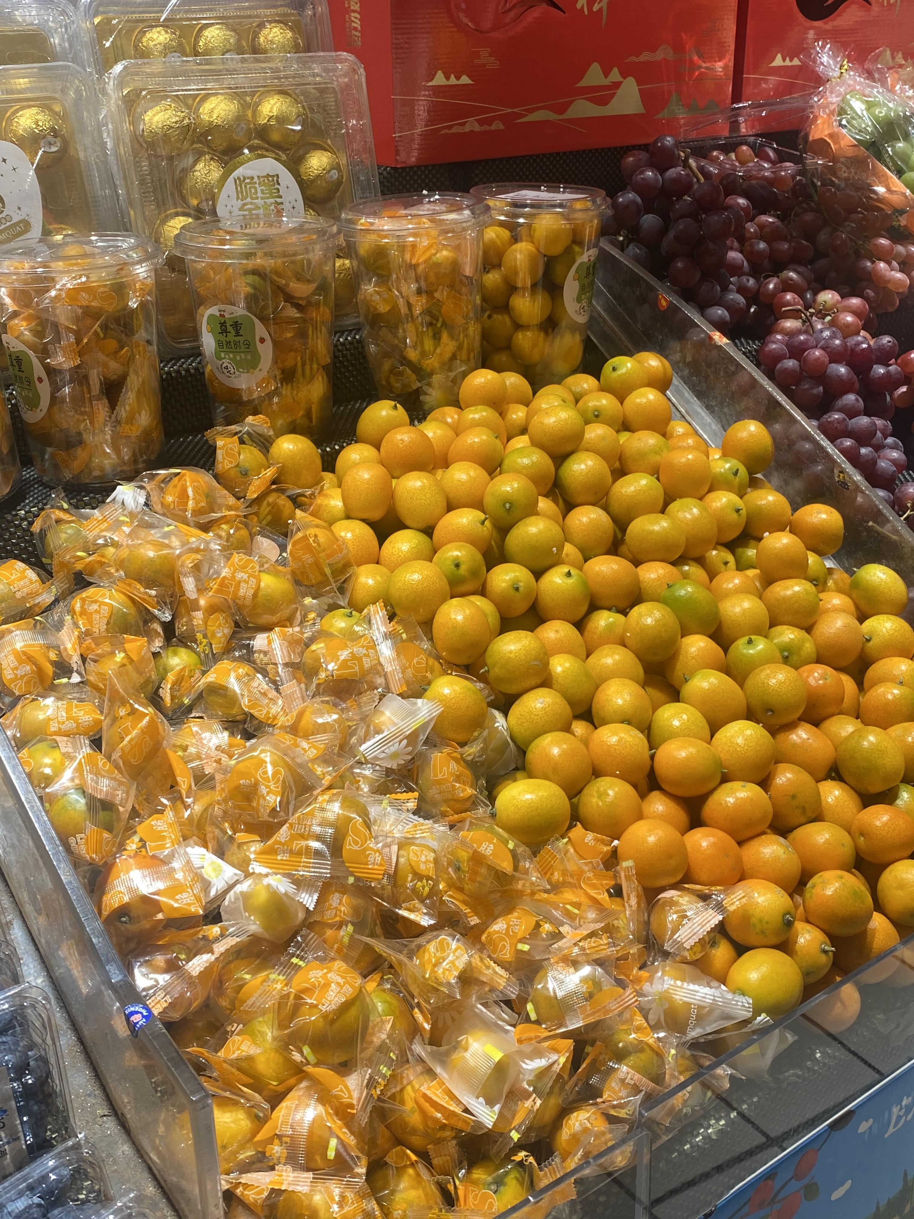 귤같은게 하나씩 비닐로 포장되어있다. 어차피 껍질 손으로 까먹을건데 왜 굳이 비닐로 포장해놨나 모르겠다. 하나씩 사먹기 위한건가..? 샤인머스캣도 9위안정도면 먹는다. 한국돈으로 이천원도 안내고 커다란 샤인머스캣을 먹을 수 있다.