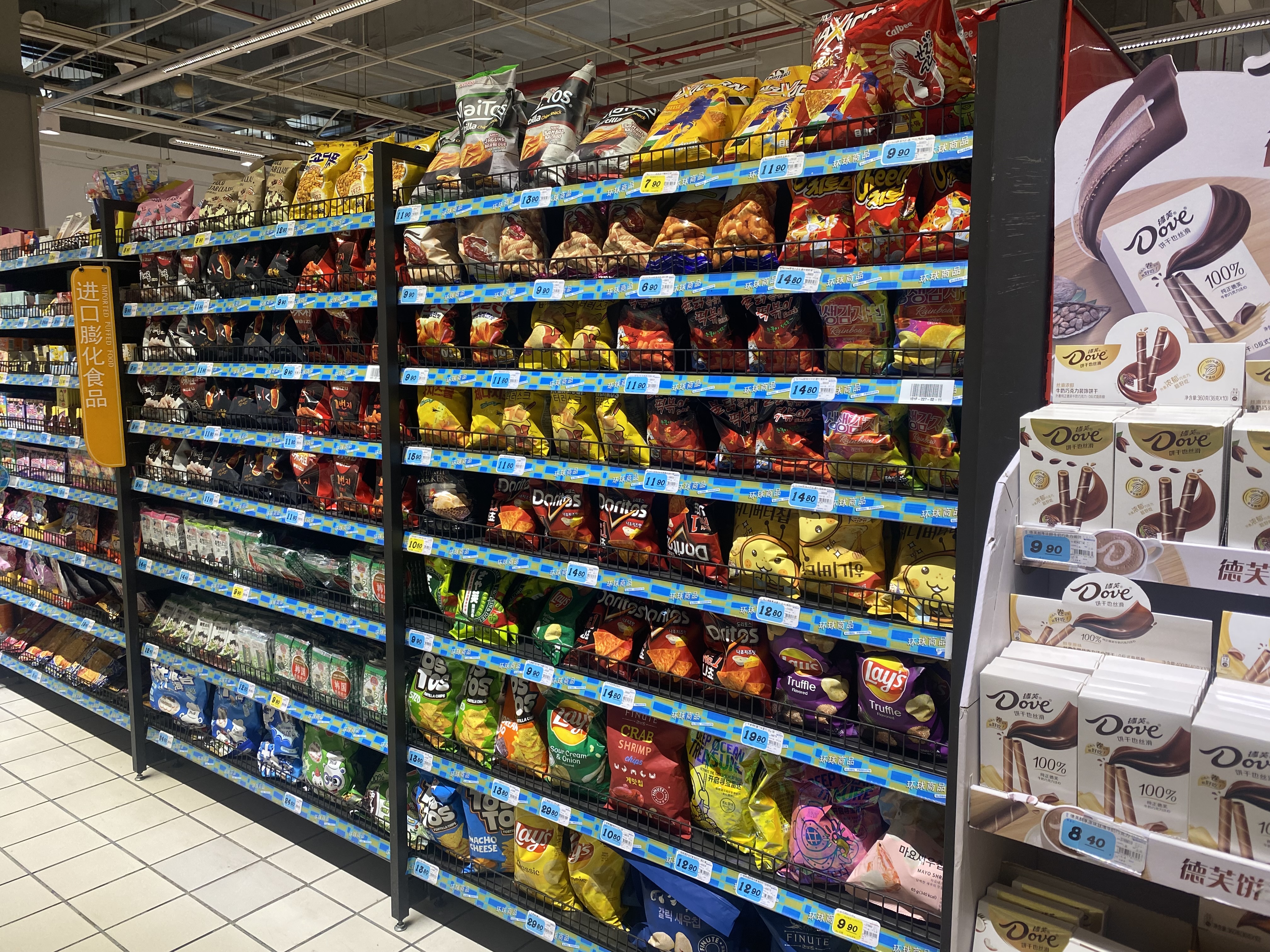 마트에 간 이유는 현지인들의 일상을 보는것이지 뭔가를 사는게 목표가 아니였다. 그래도 중국에서만 살 수 있는 과자를 몇개 샀다. 특이해보이는 과자가 레이즈 감자칩 토마토맛 오이맛이였다. 재미로 사봤는데, 토마토맛은 더 사올걸 그랬다. 토마토맛은 진짜진짜 맛있다. 오이맛은 진짜 감자칩에서 오이냄새가 나서 이게 왜 진짜냐고 감탄했다. 신기한맛. 어쨌든 중국에서 과자 기념품 사오시려는 분들, 레이즈 토마토맛 감자칩 강력 추천!!! 근데 이게 한국에도 있는지, 중국에서만 파는지는 모르겠슴둥...