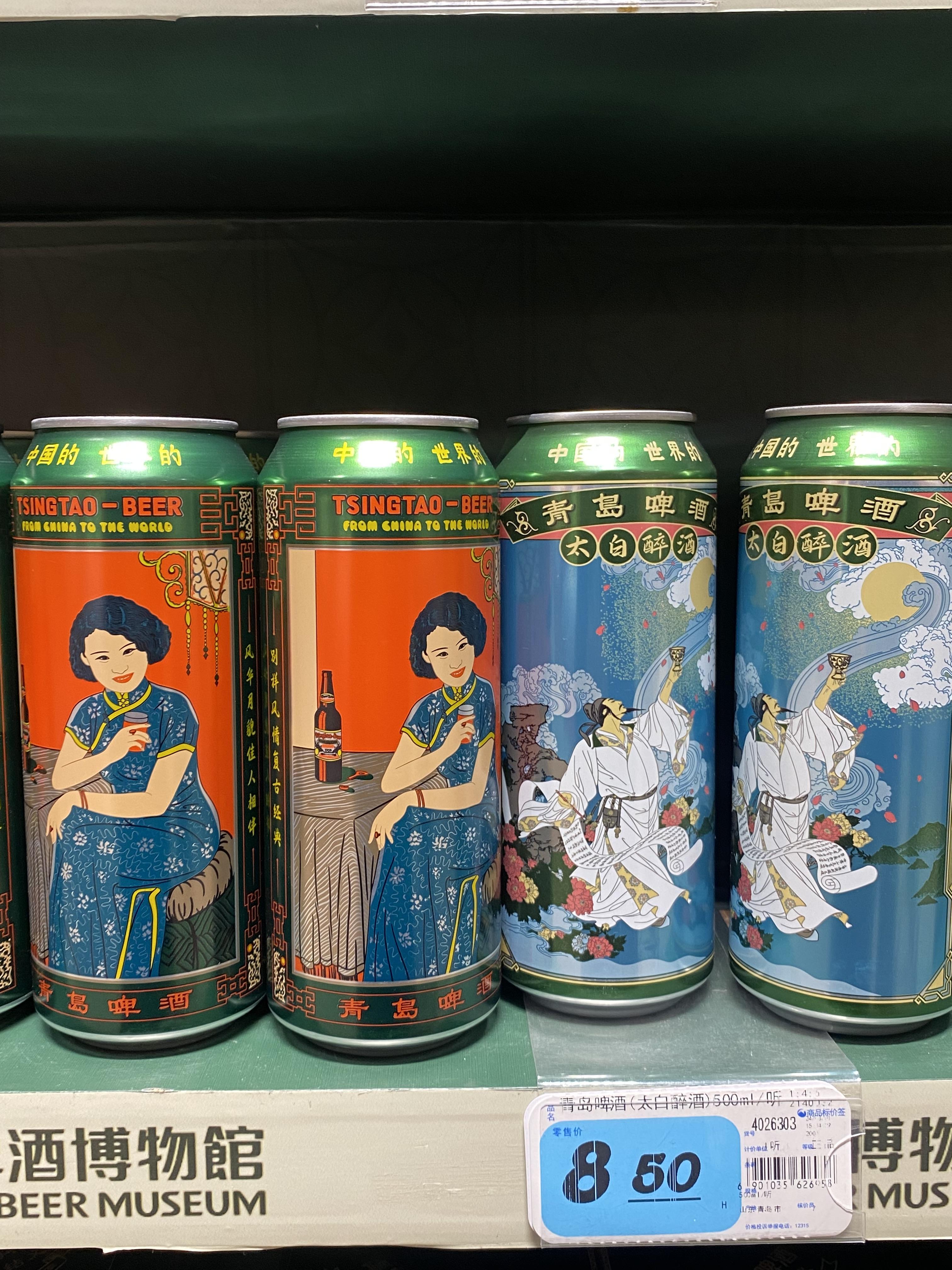 칭따오하면 맥주지! 나는 청도에 있는 RT마트로 갔다. 그래서인지 칭따오 코너가 크게 자리잡고 있었다. 칭따오는 맛도 맛이지만 그림이 뭔가 마음에 든다.