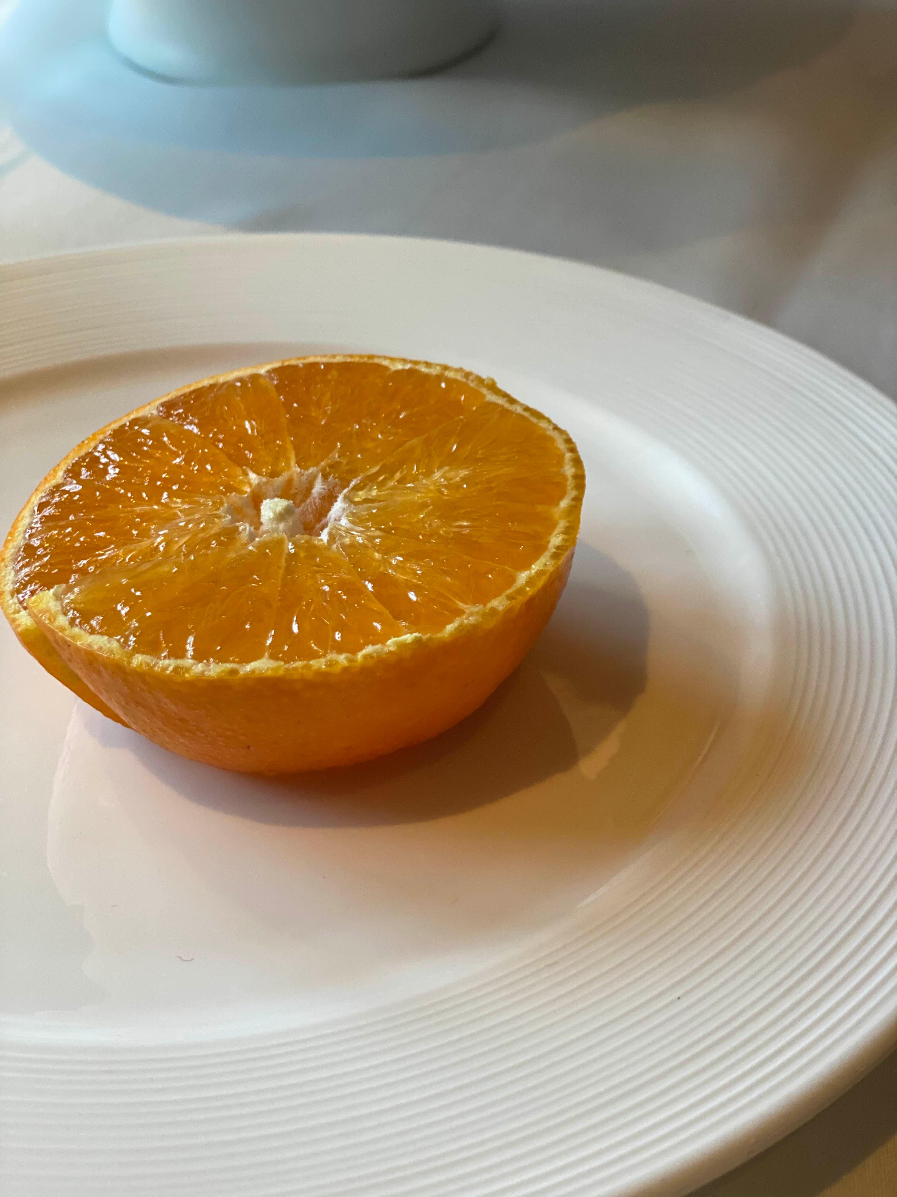제일 처음으로 서빙된건 에피타이저다. 한라봉크기의 귤..? 이름은 모르겠는데 진짜 맛있었다. 약간 천혜향느낌이다. 인원수로 나온다!