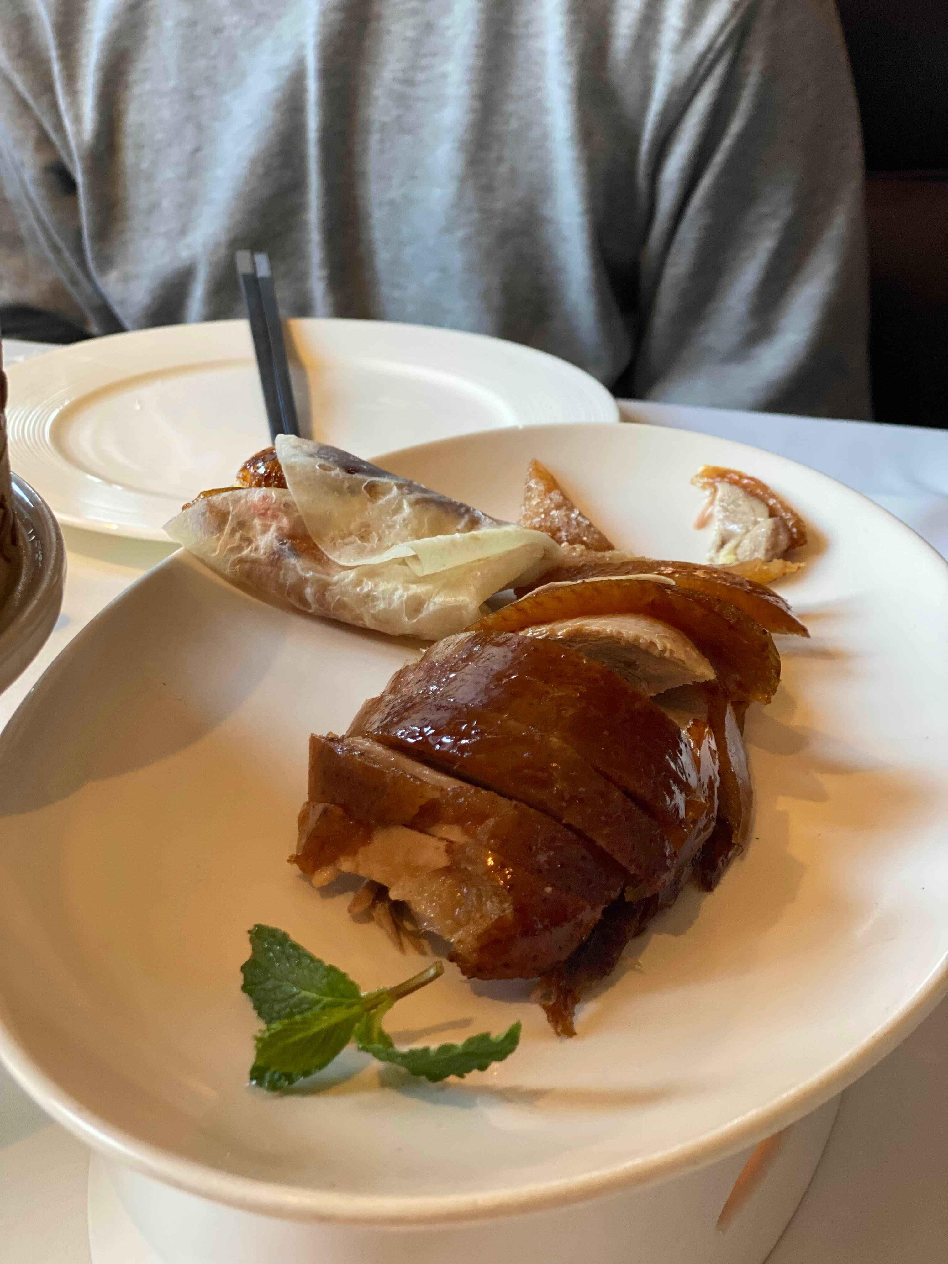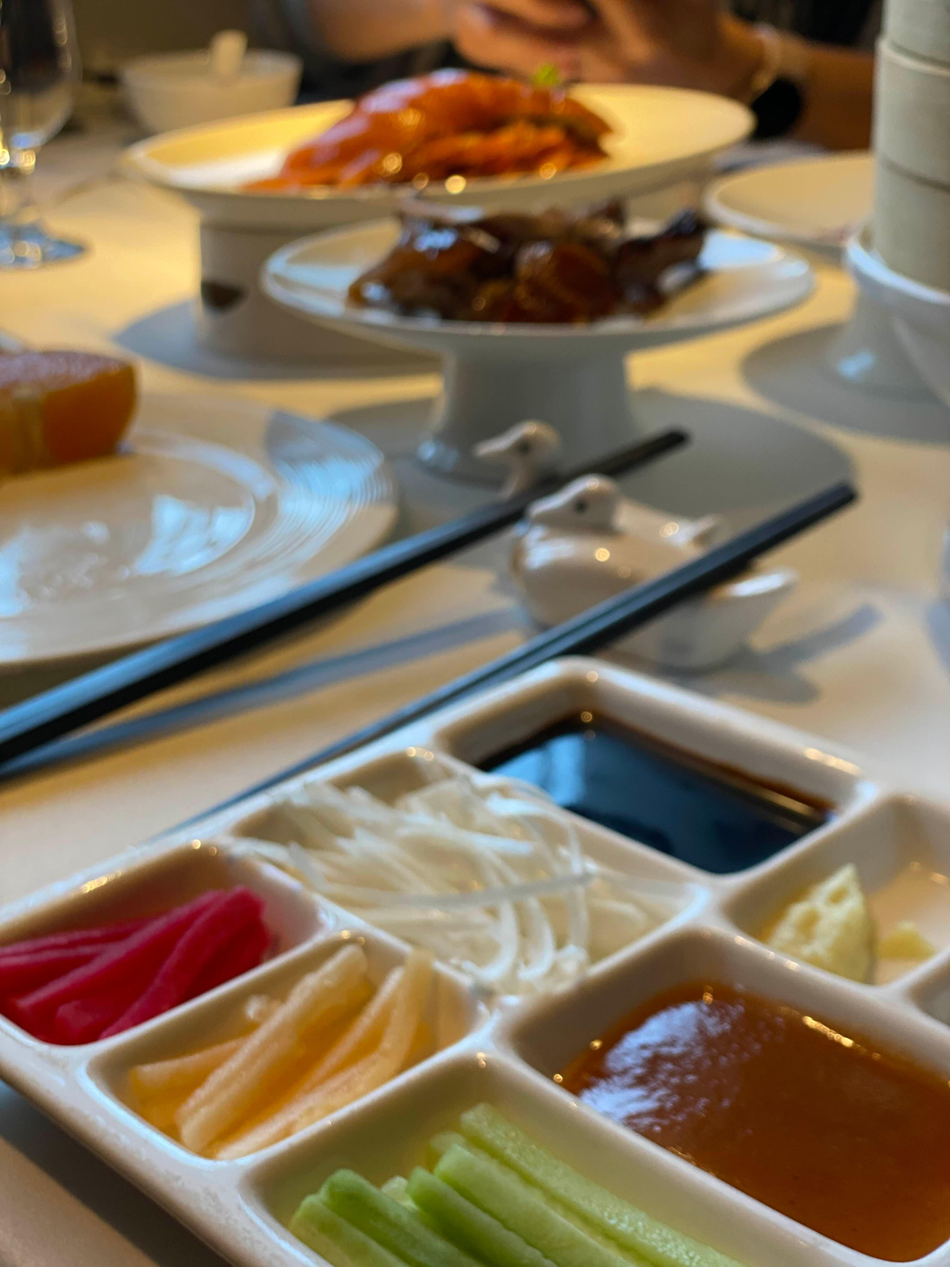 초점이 이상하게 날아갔지만.. 아무튼 직원분이 베이징덕 서빙하면서 먹는 방법을 설명해주신다. 물론 중국어로! 하지만 직접 싸는걸 보여주시기 때문에 어렵지 않다.