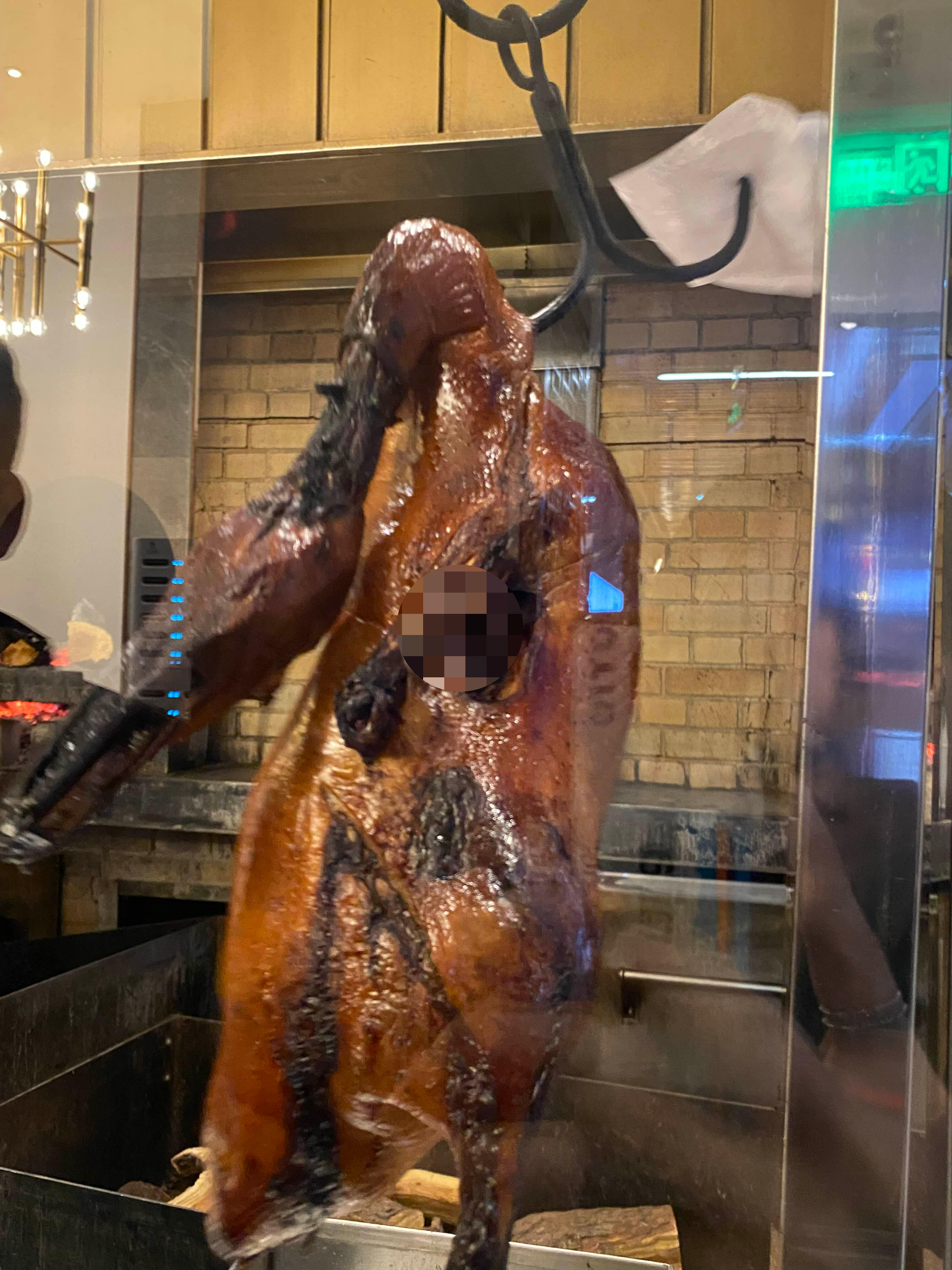 들어가자마자 오리가 매달려있는 장면을 볼 수 있다. 안에 화덕같은게 있는데 그 안에 오리들이 몇마리 들어있다. 거기서 나온 한마리인듯!