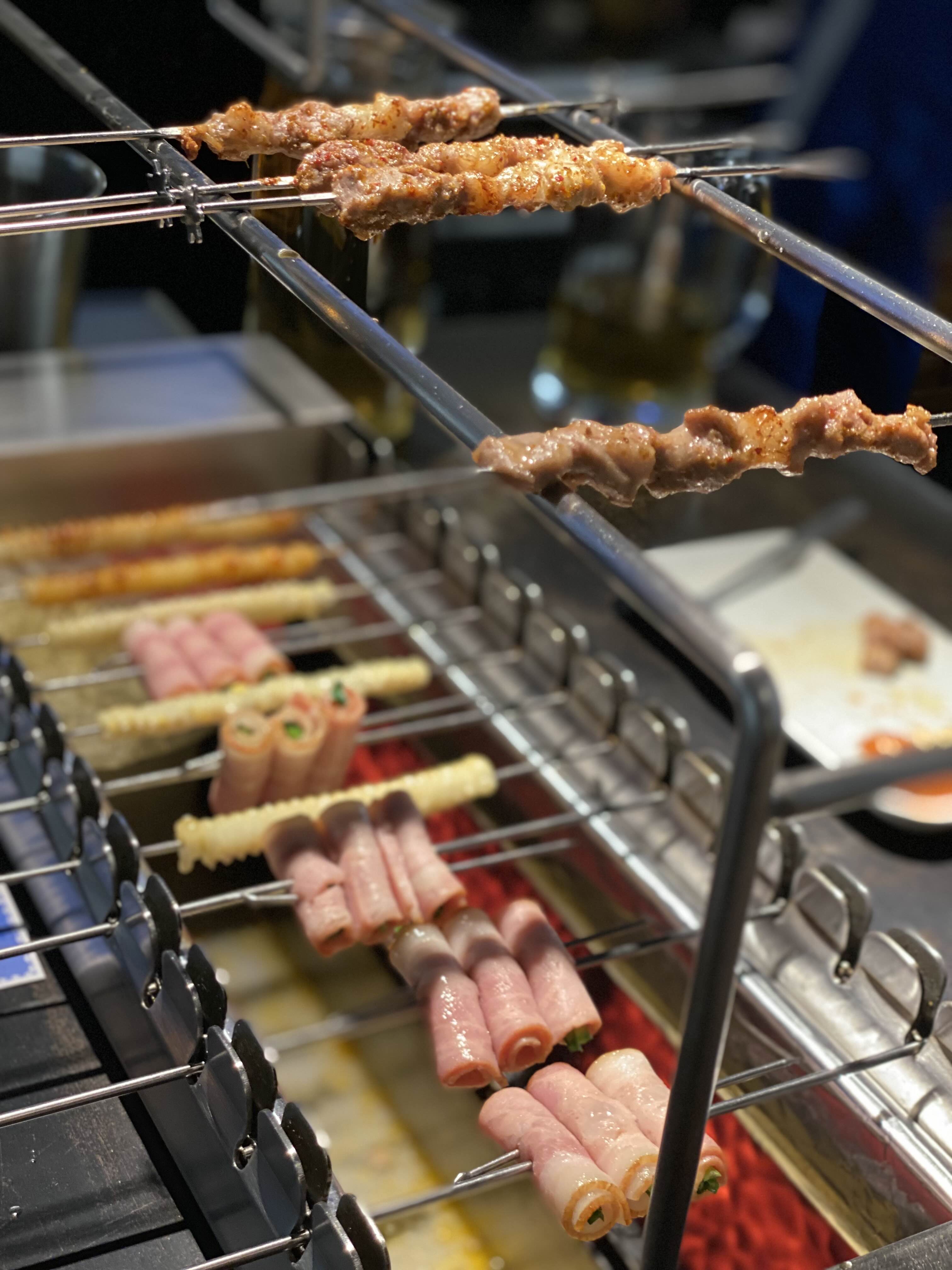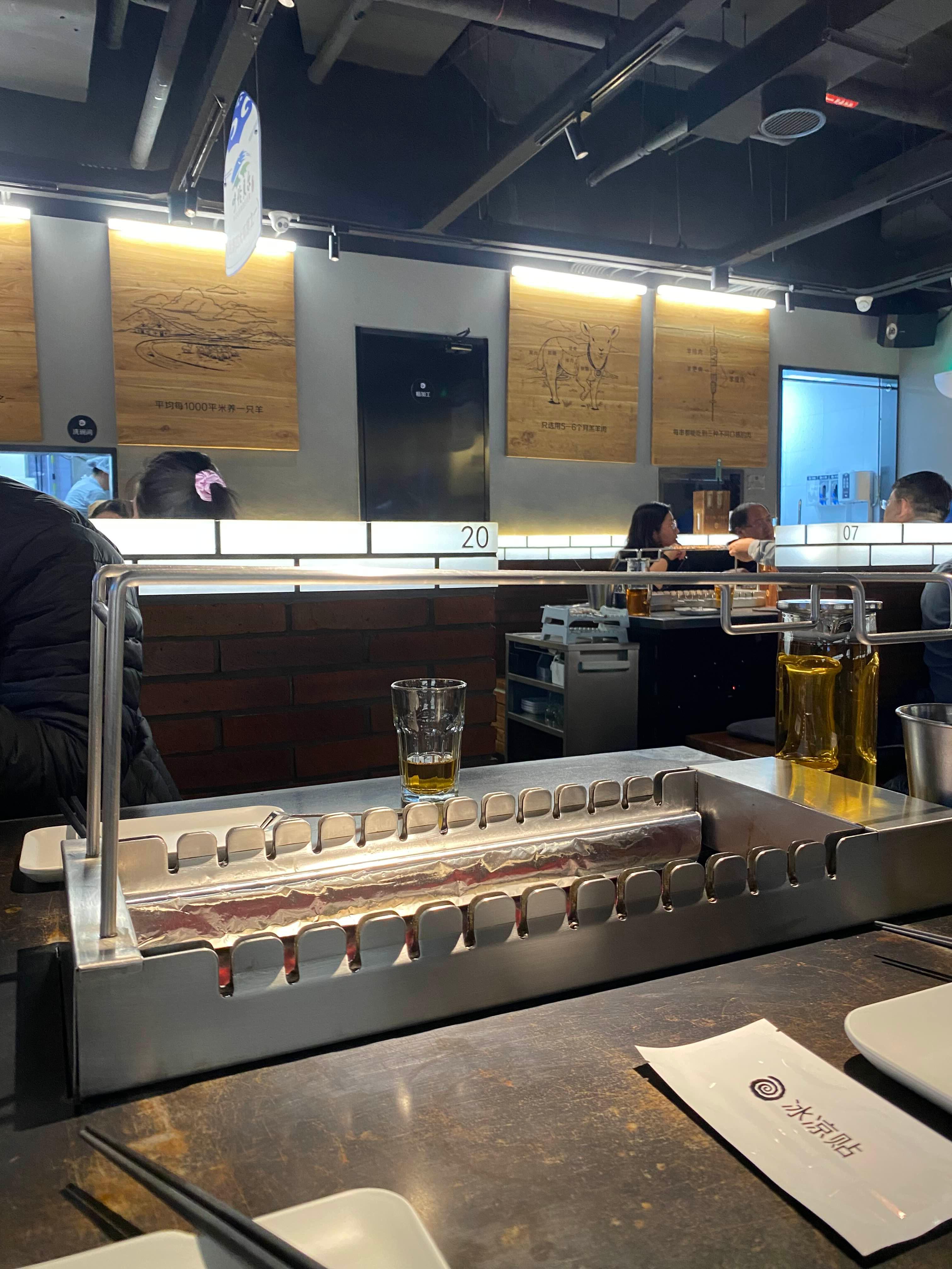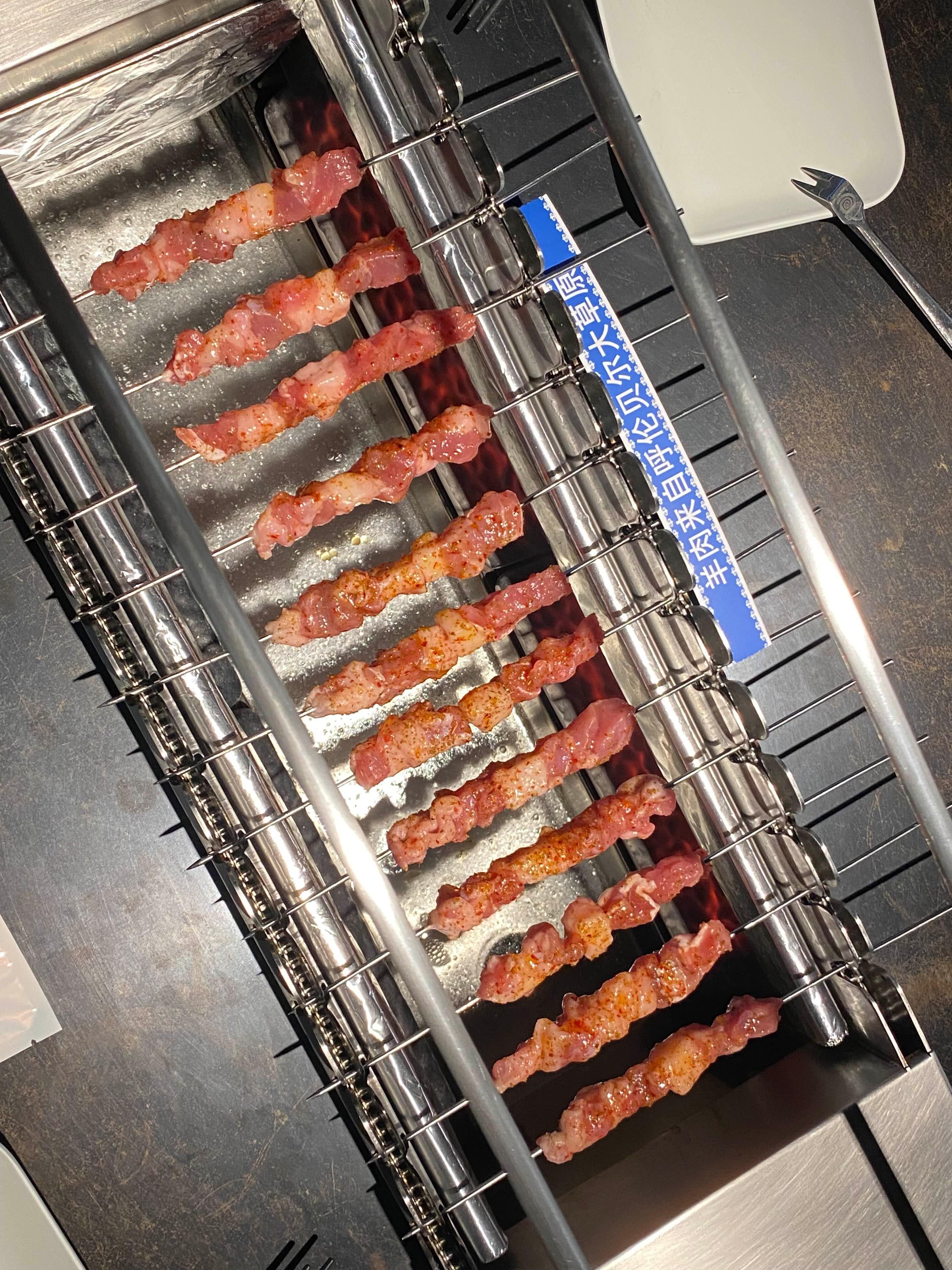 가게 테이블은 이렇게 생겼다. 아래 불이 있고 꼬치가 자동으로 굴러가며 익히게 세팅되어있다. 다 익은 꼬치는 올려둘 수 있도록 되어있다. 이런 구조는 이미 한국에 있는 양꼬치 집에도 많으니 신기하진 않았다. 물론 한국에서 처음 양꼬치 먹으러 갔을 때는 눈이 휘둥그레지긴했다.