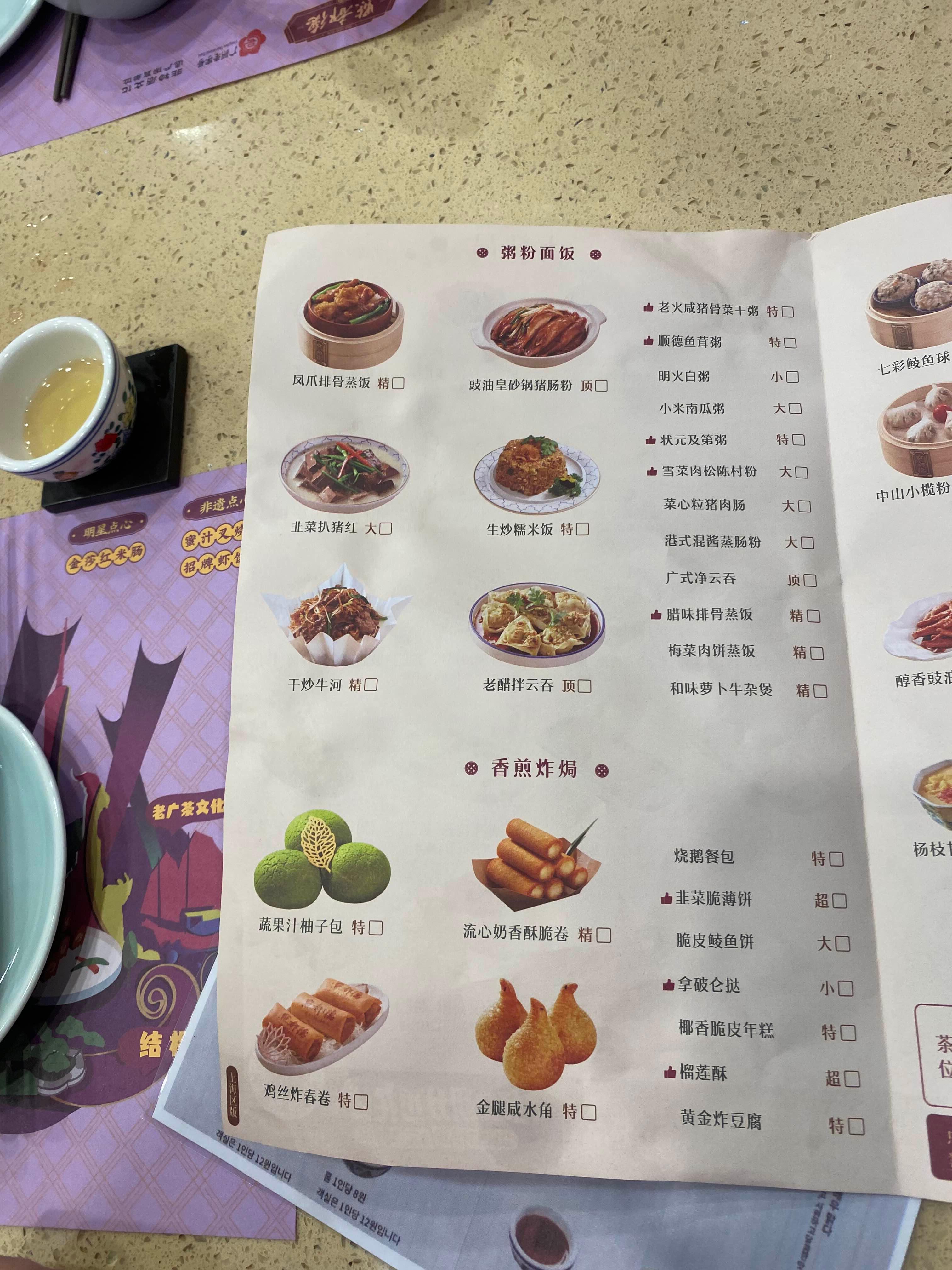 메뉴판의 딤섬들 보는데 다 너무 맛있어보였다. 정체는 알 수 없었는데, 그냥 맛있어보이는걸로 골라서 시켜먹기로 했다.