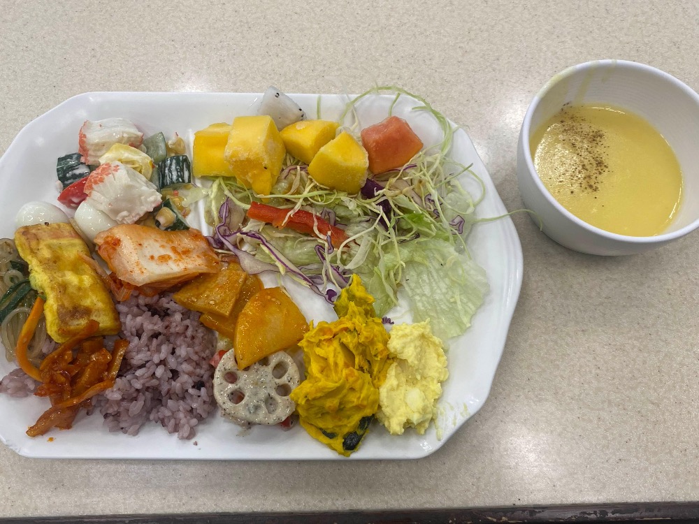 토요코인 예약할 때 조식 신경 안쓰고 그냥 예약했는데, 조식을 제공해준다고 해서 반가웠다. 그냥 간단하게 식빵이나 있겠지 하고 내려왔는데, 조식이 꽤나 든든하게 잘나왔다. 샐러드부터 한식까지, 하루를 든든하게 시작할 수 있는 음식들이였다. 이 때 배부르게 맛있게 먹었어서 하루종일 잘 일을 마치고 올 수 있었던거 같다.
