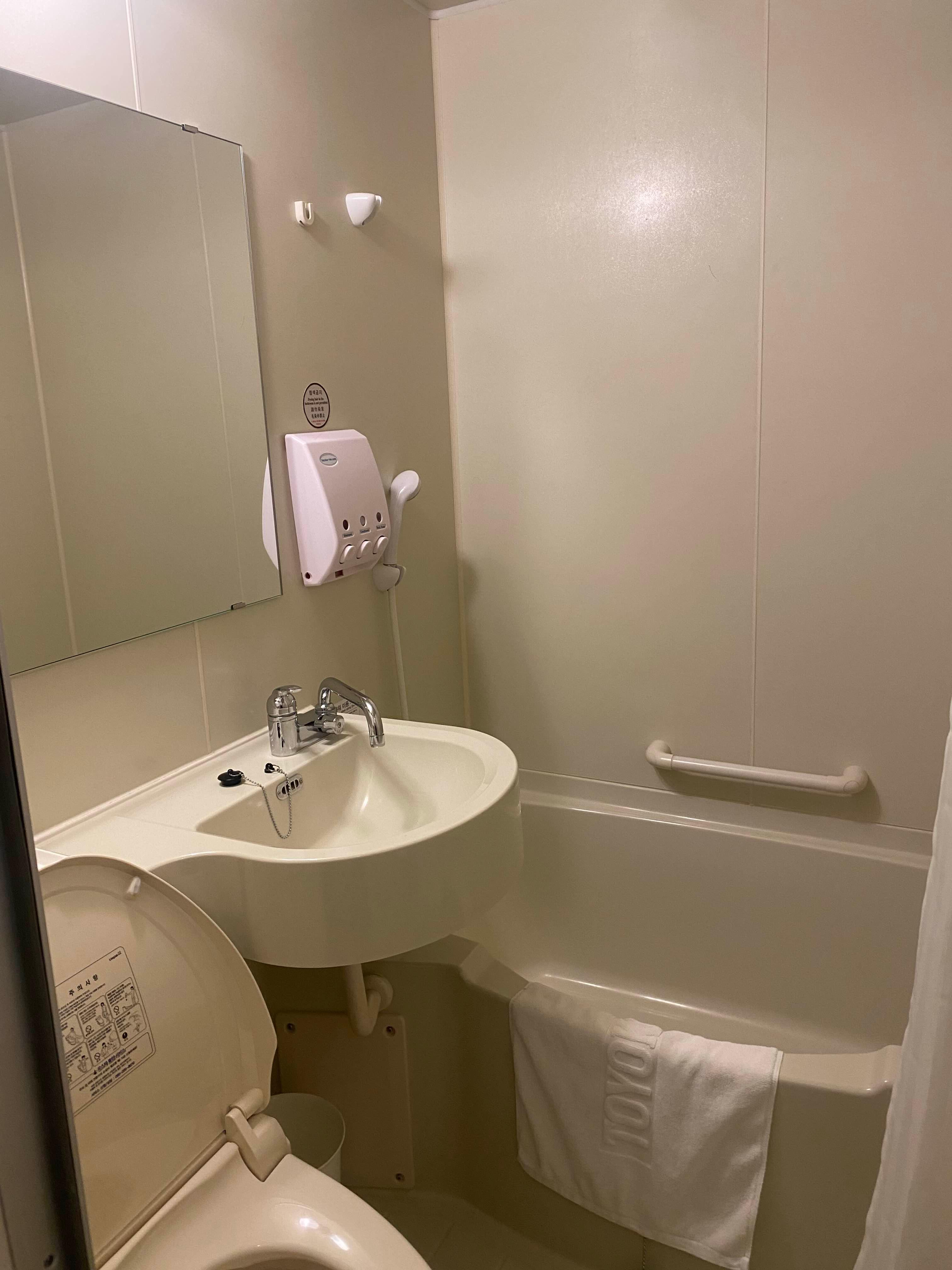 방은 컴팩트하고 깨끗했다. 그리 좁지도 않았다. 도쿄에서 비즈니스 호텔에 묵은적이 있었는데, 그때는 진짜 침대말고 발 디딜 곳이 별로 없었다. 해운대에 있는 토요코인이 훨씬 쾌적하고 넓은 느낌!