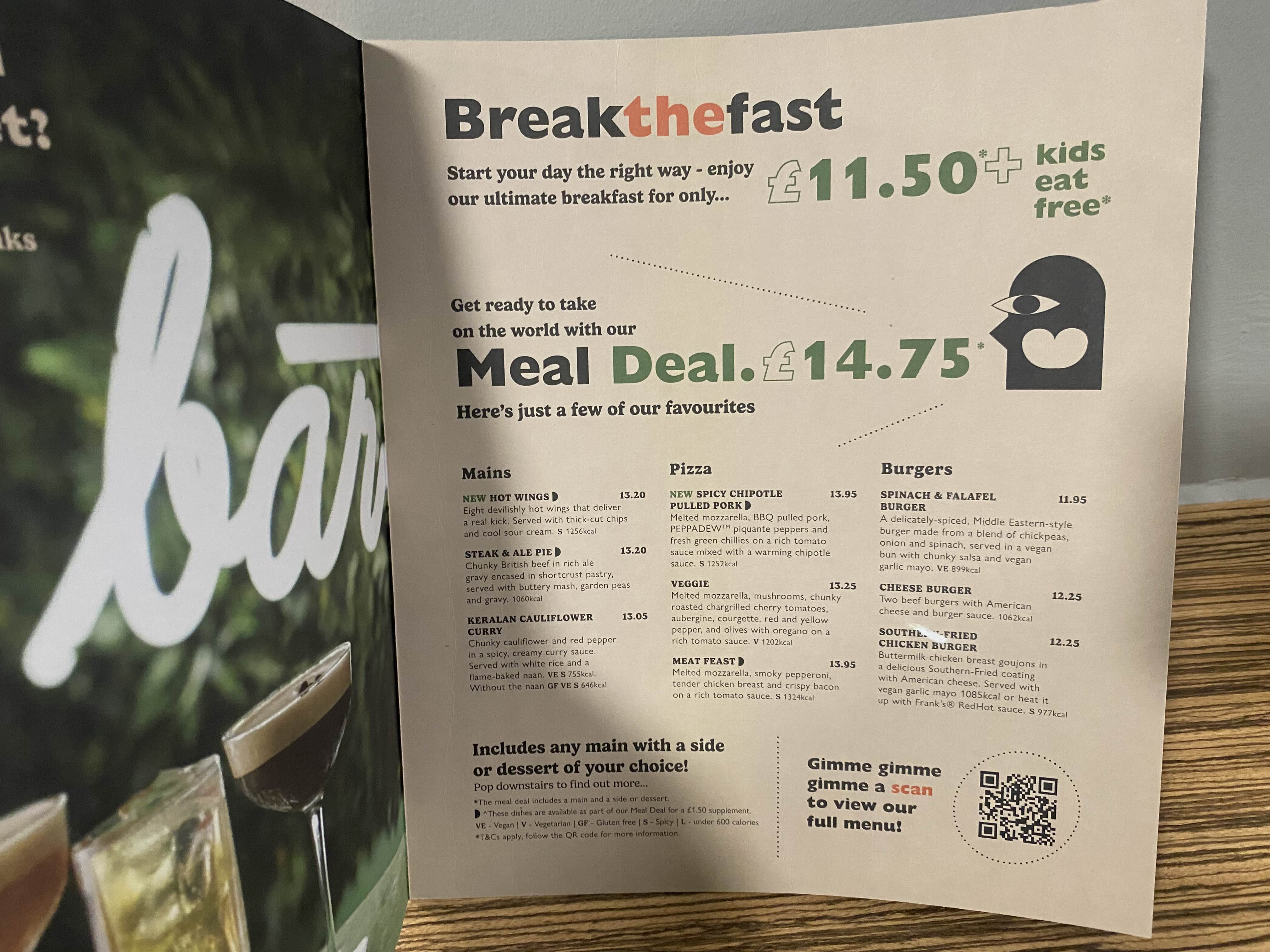 조식은 11.50 파운드이다. 아이는 무료!