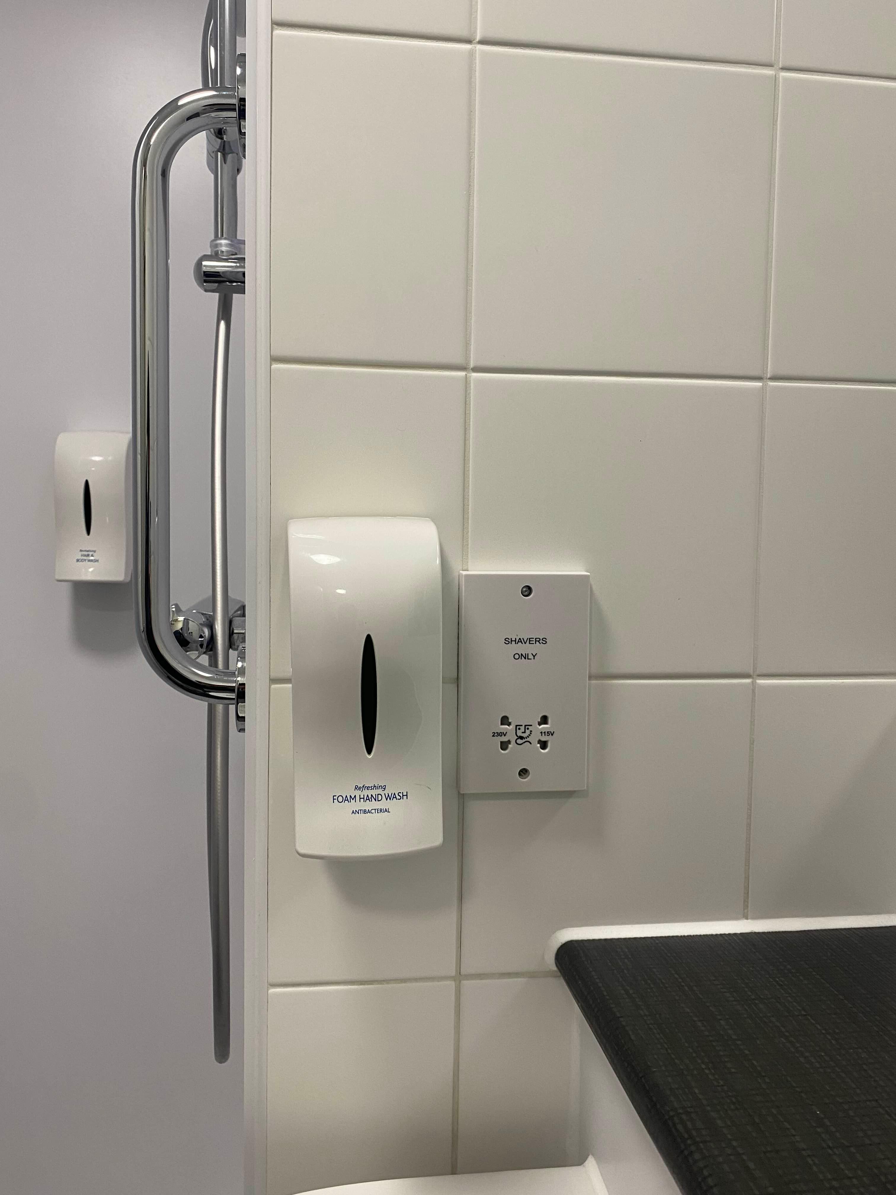 핸드워시도 있다! 그리고 옆에는 면도기만 사용하라는 콘센트가 있다. 아예 플러그 모양이 달라서 내가 가지고 간 콘센트 변환기로 시도조차 안해봤다. 그냥 안전하게 방에 있는 콘센트를 사용하시길..!