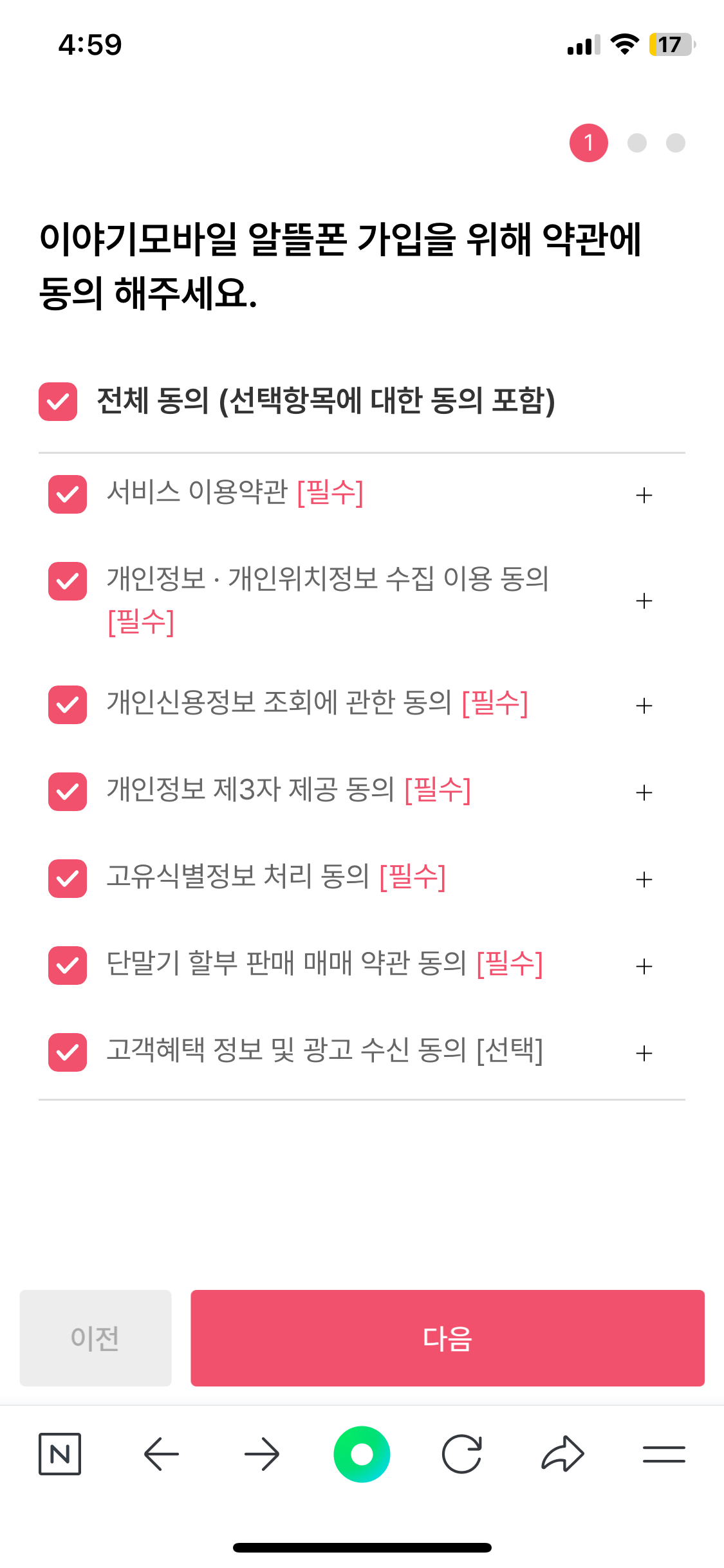 유심칩을 배송 받고 나면 아래와 같이 알뜰폰 가입을 해주면 된다.
