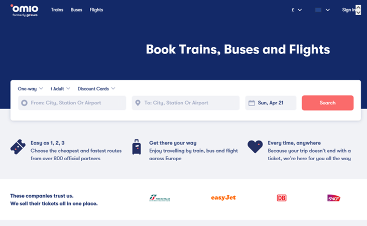 고유로를 이용하면 유럽내에 이동할 때 어떤 교통수단으로 갈 수 있고 각 시간과 가격이 어떤지 비교해 볼 수 있는 아주 편하게 확인할 수 있어요! 출발하는 도시와 도착하는 도시, 그리고 날짜만 선택하여 Search 버튼을 눌러주면,