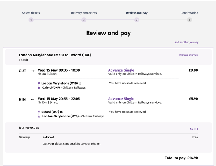 저는 이렇게 런던에서 옥스포드 왕복 기차티켓을 예약했습니다~ 도움이 되면 좋겠네요..!