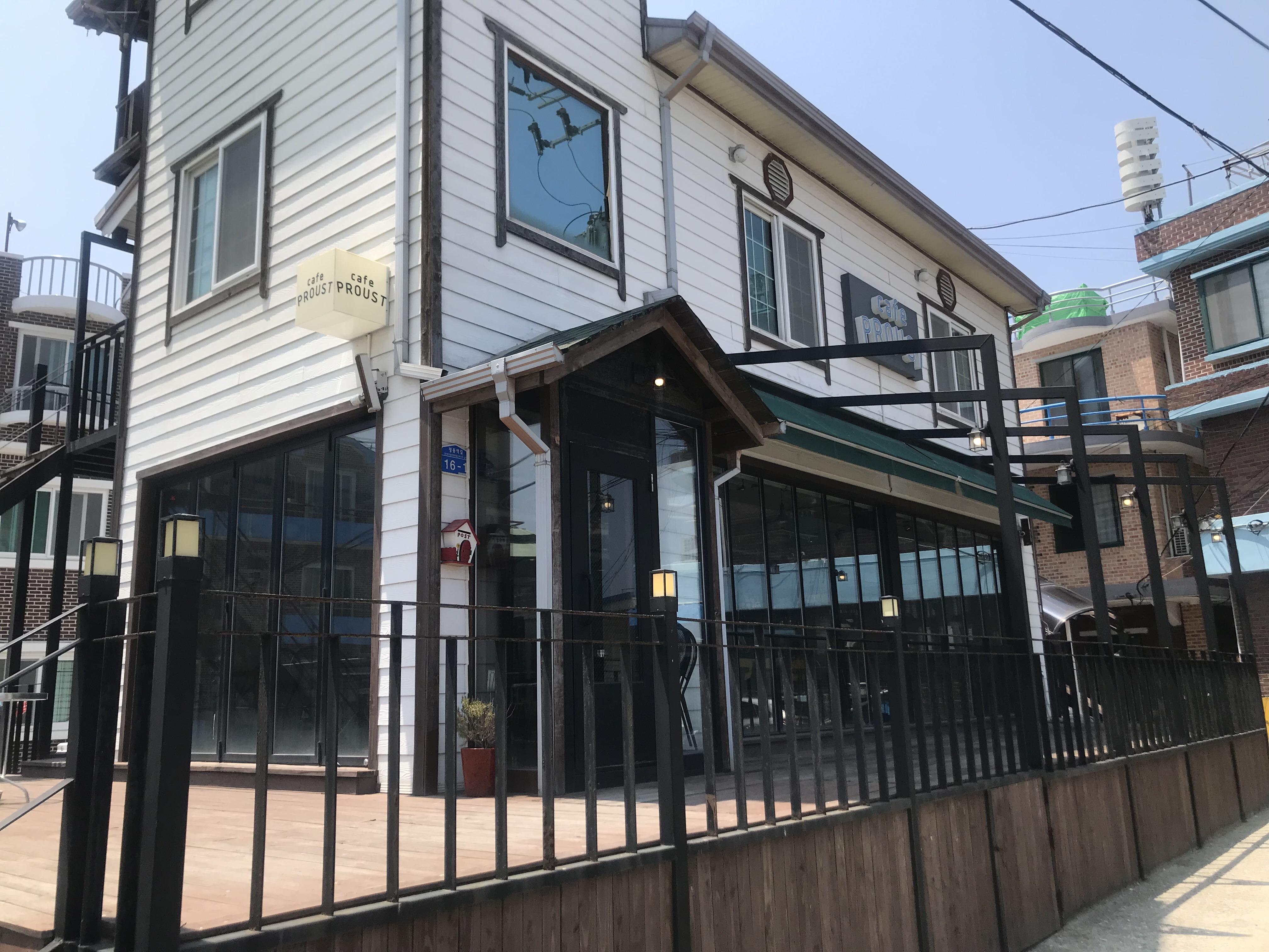하슬라 미술관을 다녀온 후 시간이 조금 남아서 레일바이크 매표소 앞에 위치한 카페에 가기로 했습니다. 위 사진의 건물이 까페입니다. 주변에 다른 커피가게들이 있긴 했지만, 대부분 테이크아웃 전문이였기 때문에 이 곳을 선택했습니다.