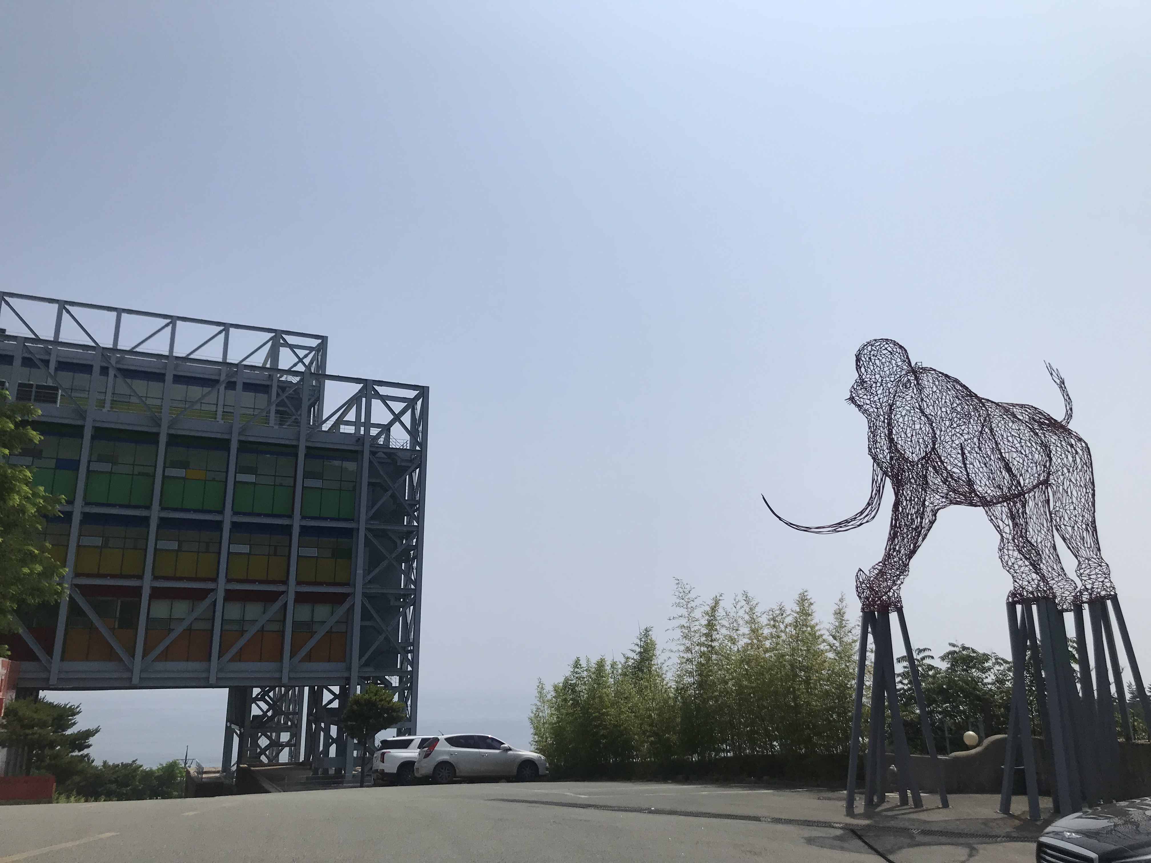 차에서 내리자마자 눈에 띄는 건 코끼리와 기린 모형의 조형물 입니다. 주차장에 있으며, 하슬라아트월드의 마스코트라고 해도 과언이 아닐 듯 합니다. 그만큼 눈에 띄고 기억에도 많이 남는 조형물 입니다. 왼쪽에 보이는 건물로 가면 입구가 있습니다.
