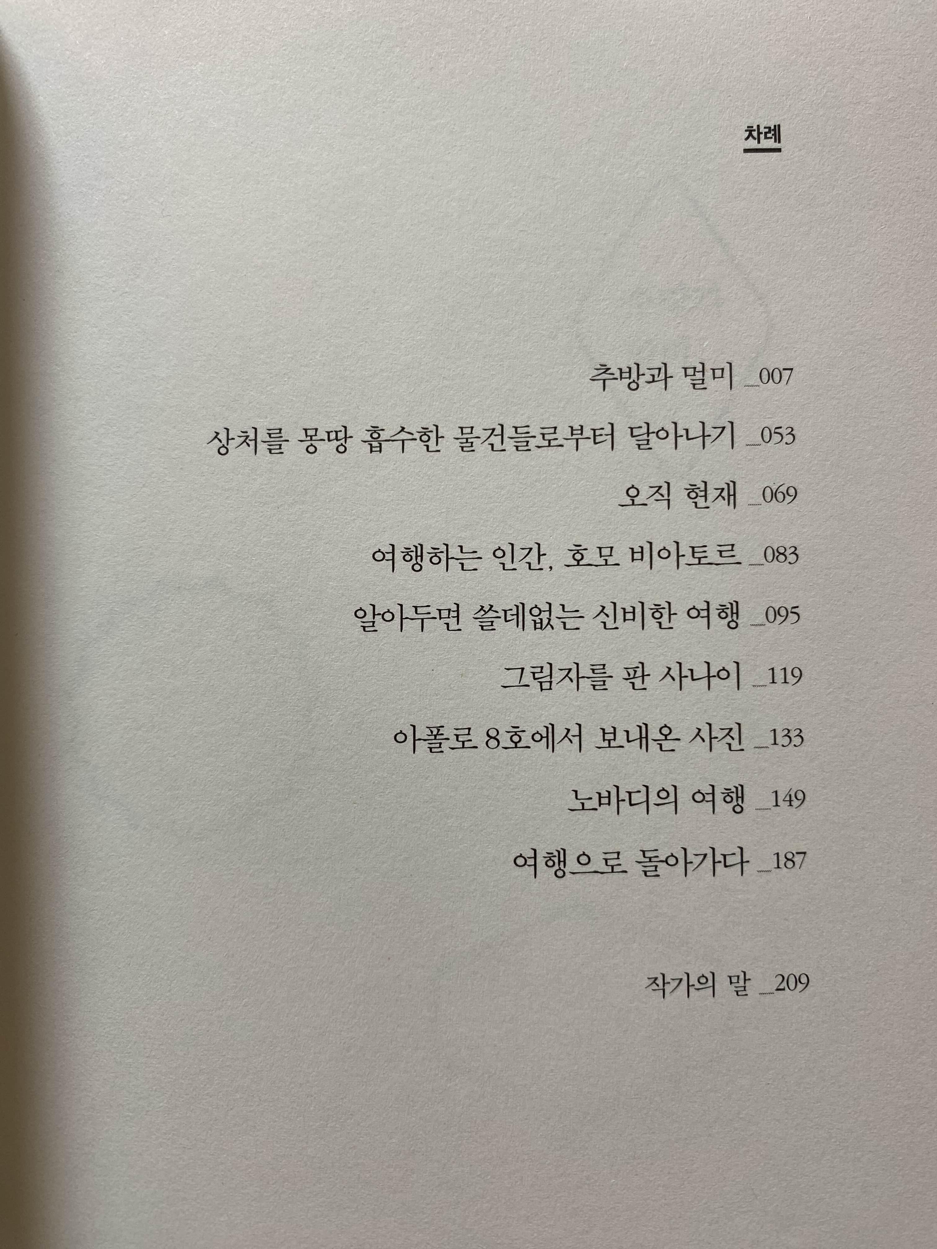 한동안 여행을 가고싶기는 하지만 귀찮기도하고 들어갈 돈이나 시간이 먼저 걱정되어 의욕이 없어지는 기간이였다. 근데 이 책을 읽고 나서, 다시 여행을 소망하게 된거 같다.
