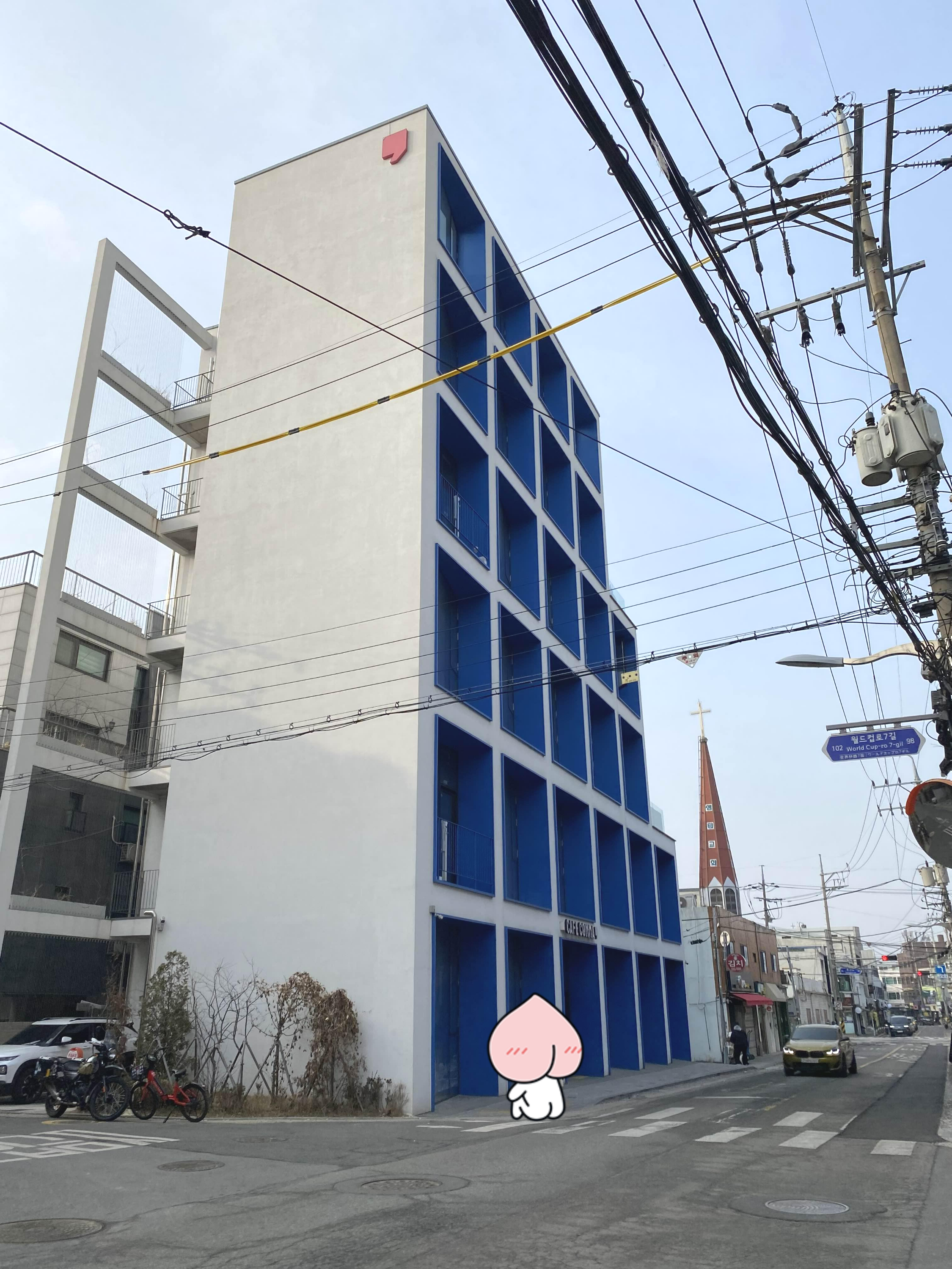 슬슬 걸어가다보면 카페꼼마가 보인다. 요 주변에서는 높은 건물에 속하는거 같다.