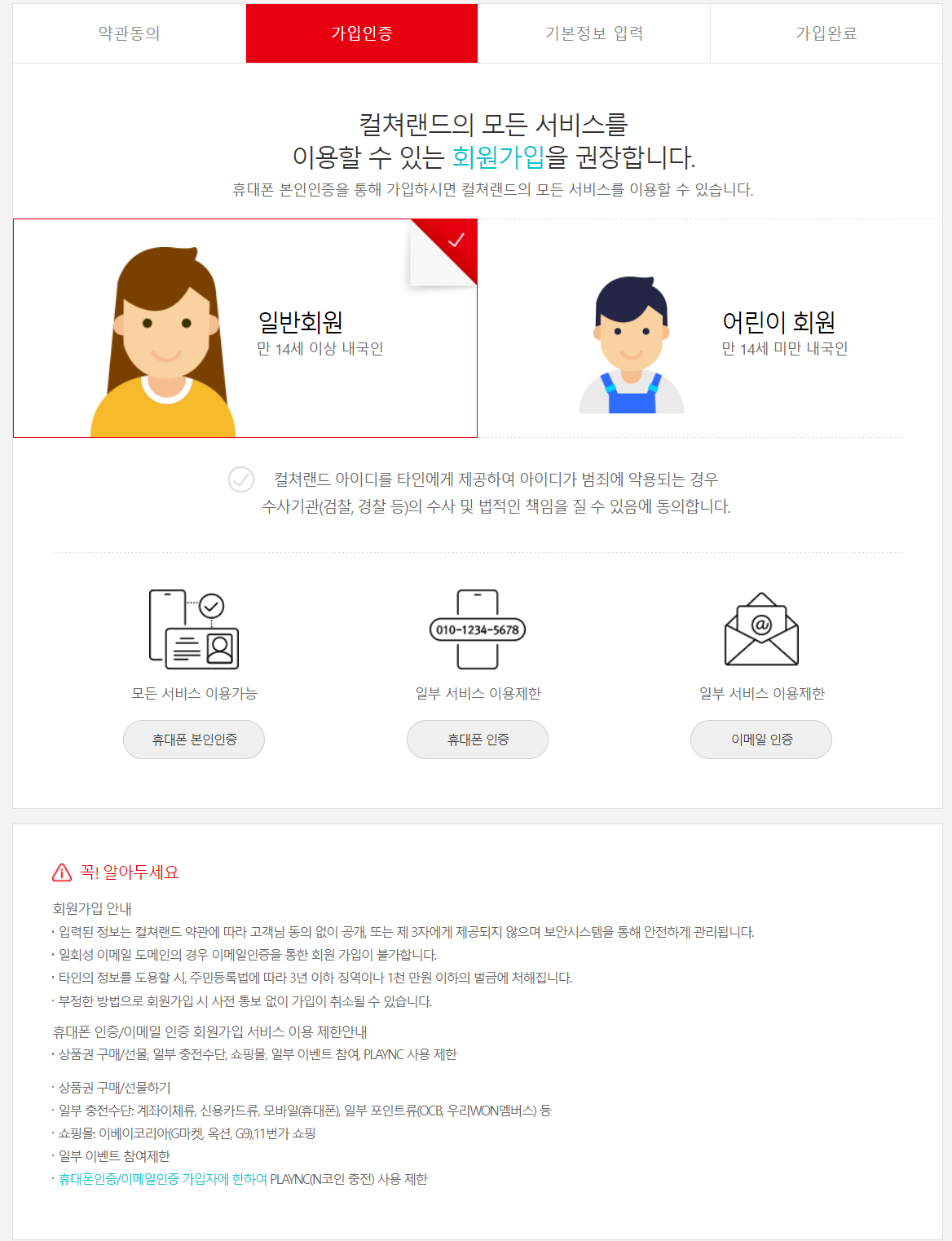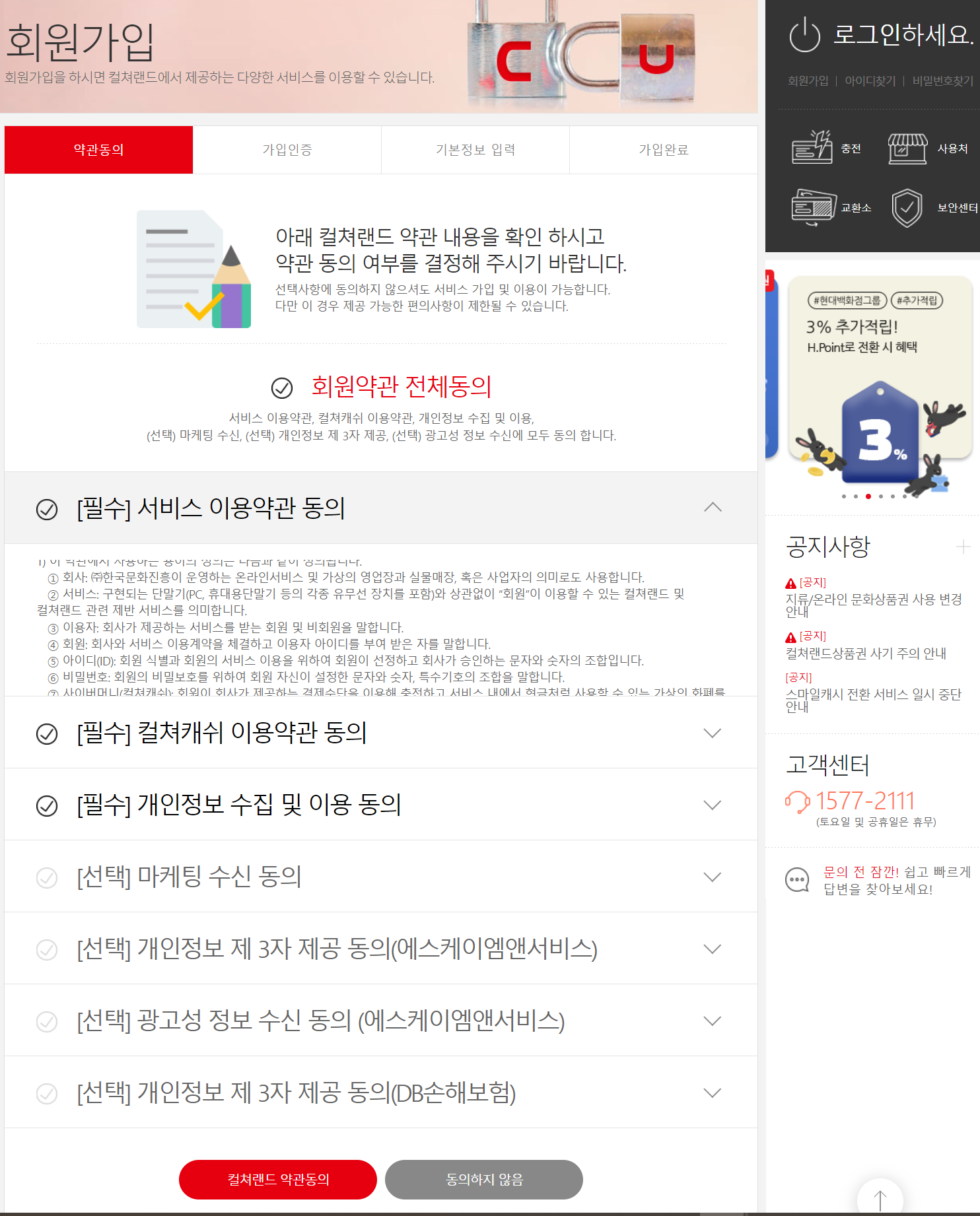 컬쳐랜드 가입하기