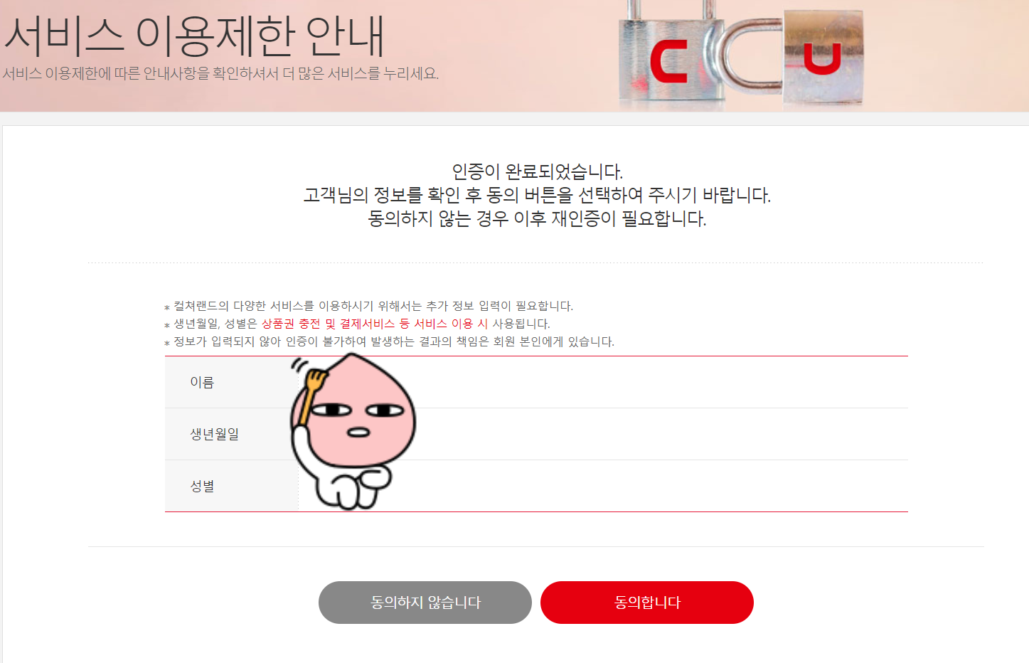 동의할 것도 너무 많다. 귀찮다. 그래도 삼천원... 소중하지... 후.... 필요했던 추가 정보는 내 생년월일이랑 성별이였다.