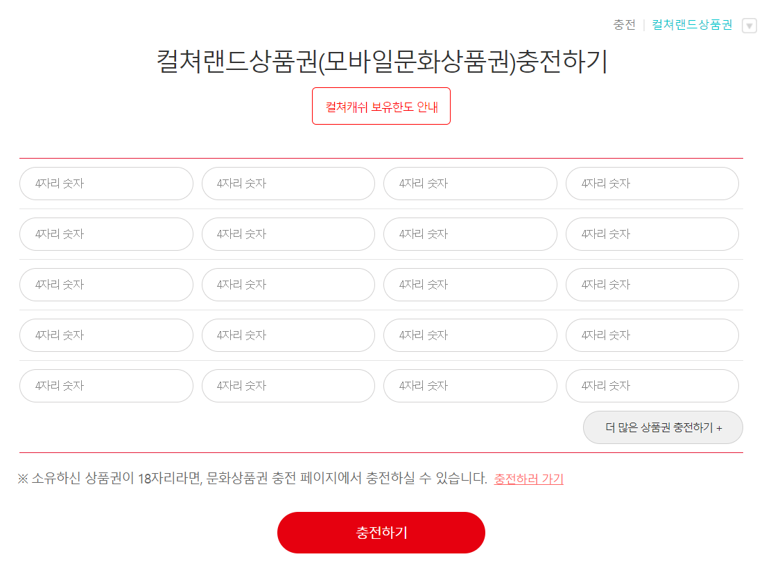 컬쳐랜드상품권 등록, 충전하기